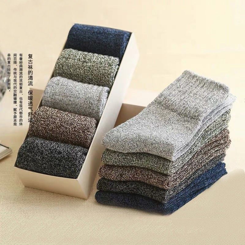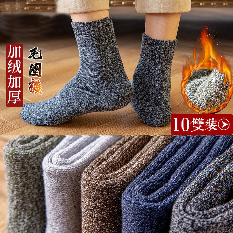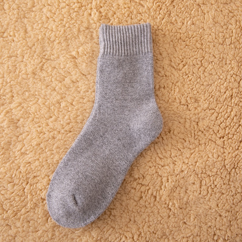 日系纯色加厚毛圈中筒袜子冬季新品复古男士森纯色厚棉袜运动袜