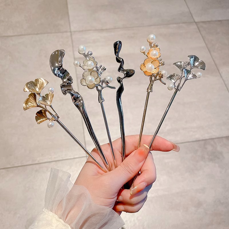 简约现代金属发簪高级感女夏天盘发簪子古风旗袍发钗头饰日常发饰