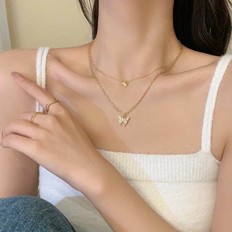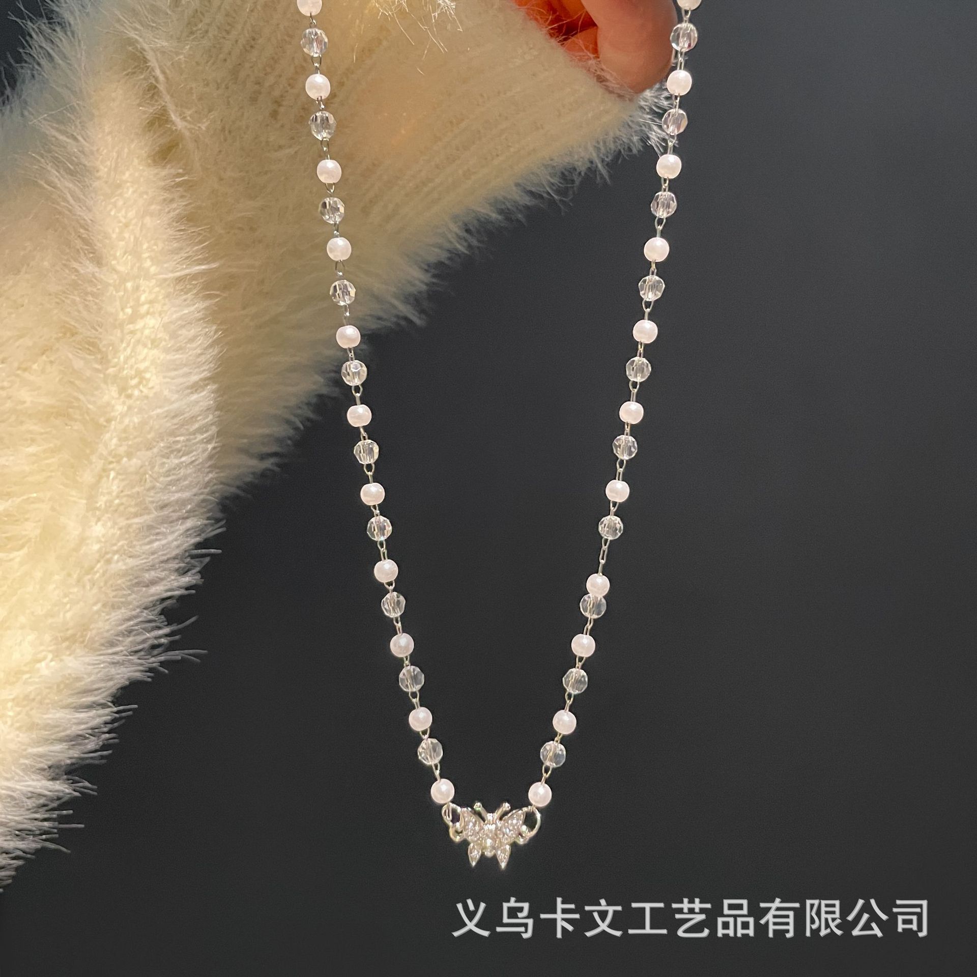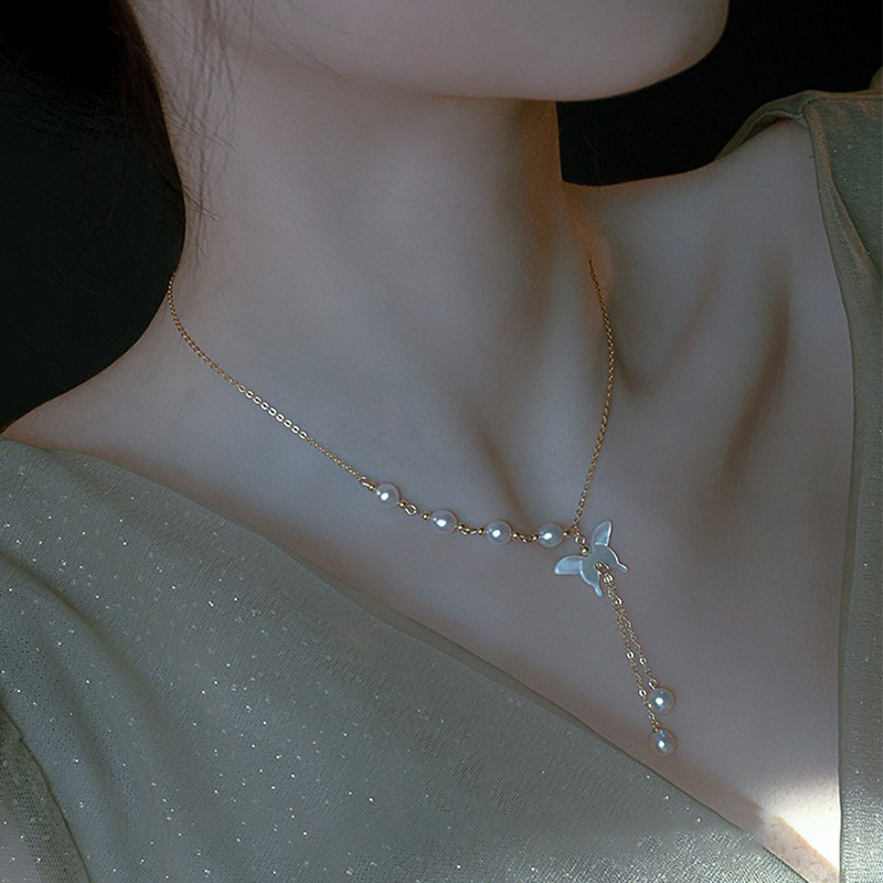 韩版时尚珍珠项链欧美简约蝴蝶吊坠大东门ins个性百搭小众项圈女