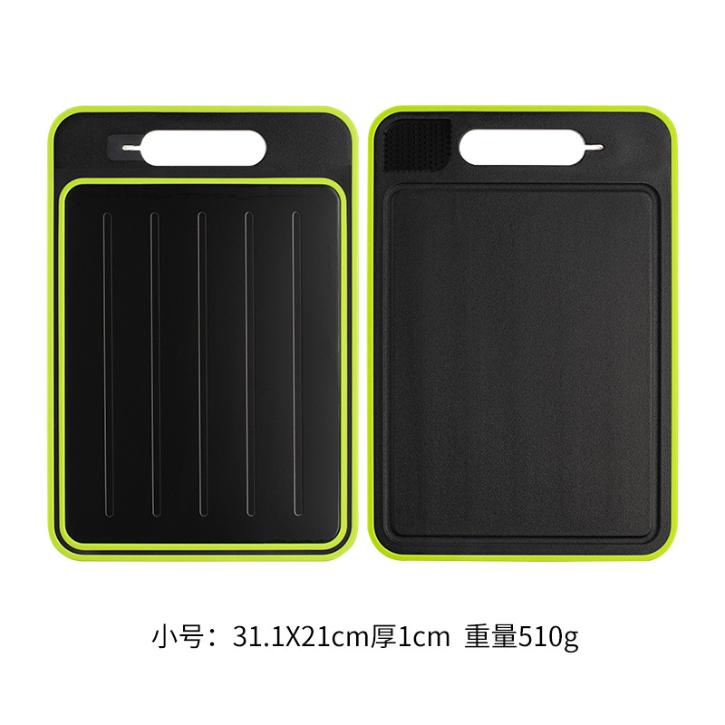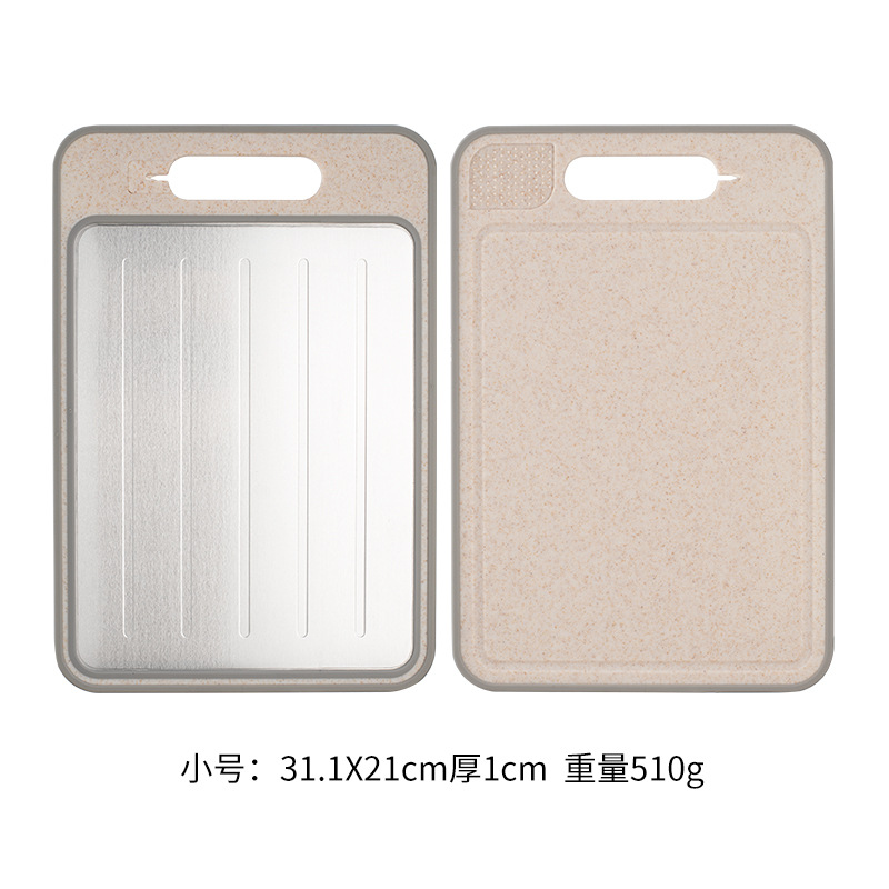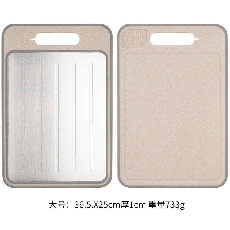 跨境物理解冻铝合金喷漆双面切菜板 多功能带磨刀器研磨蒜泥砧板