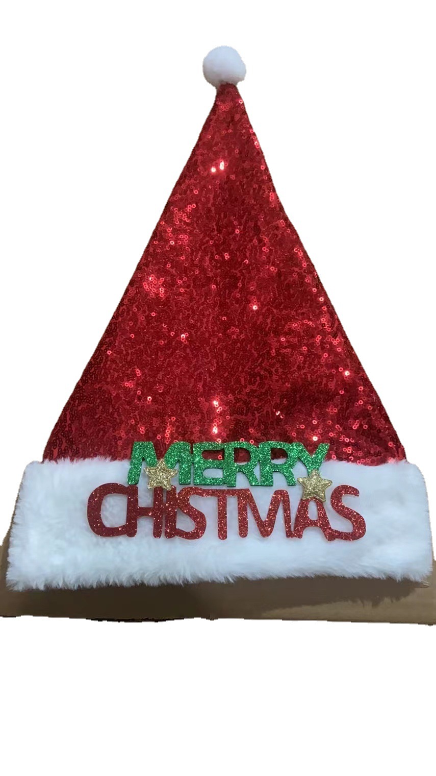 亚马逊新款圣诞亮片帽红色毛绒可爱发饰圣诞快乐帽