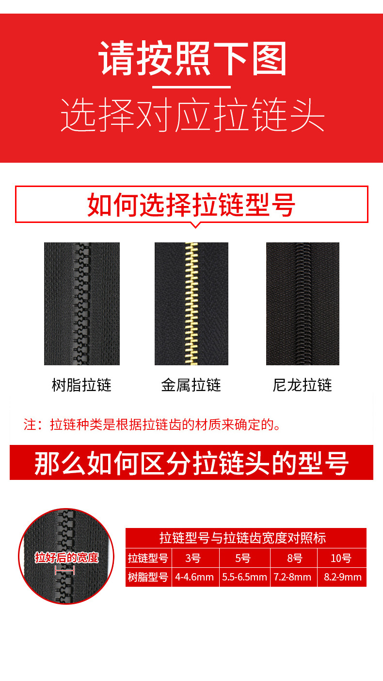 羽绒服双面拉链头衣服外套修复金属拉锁头配件万能替换树脂5号8号