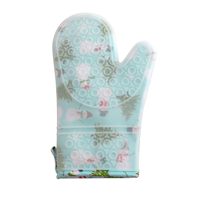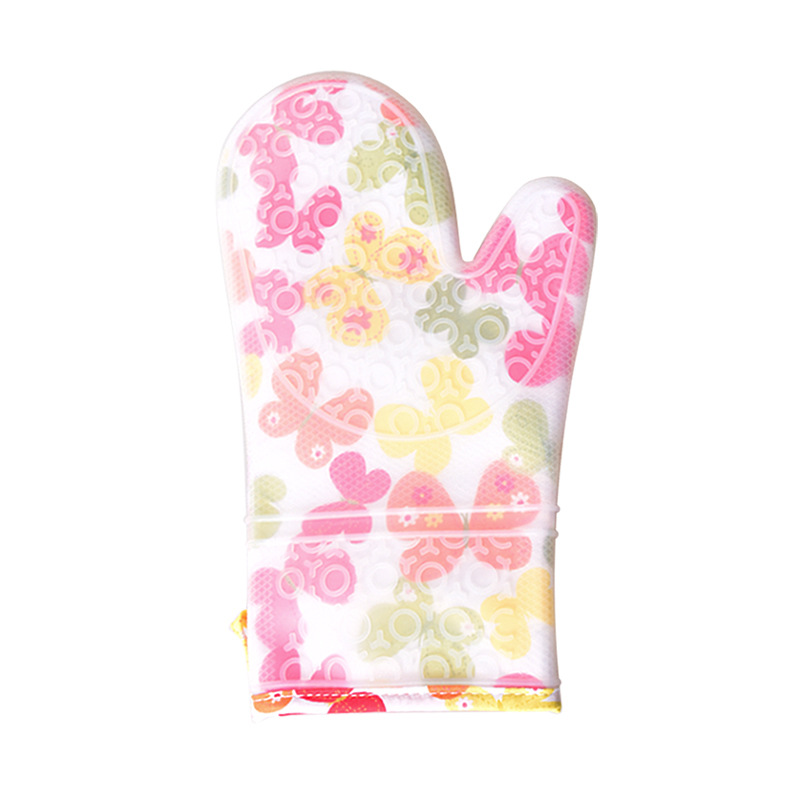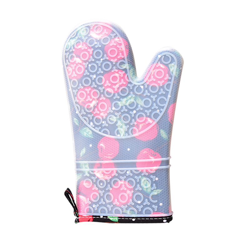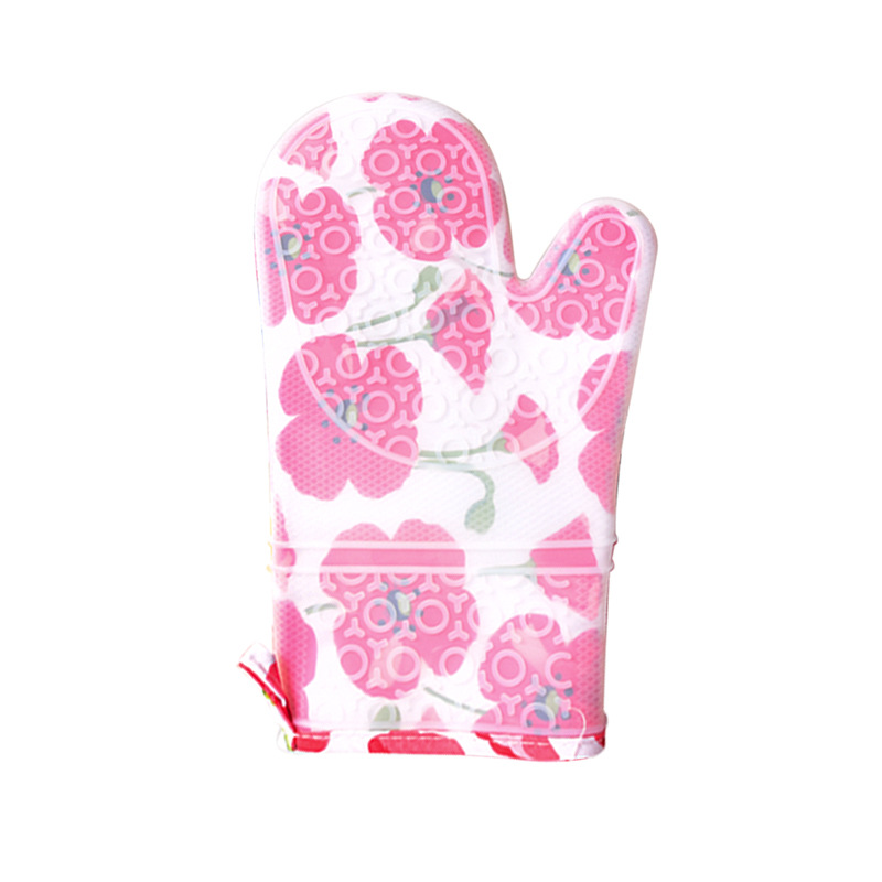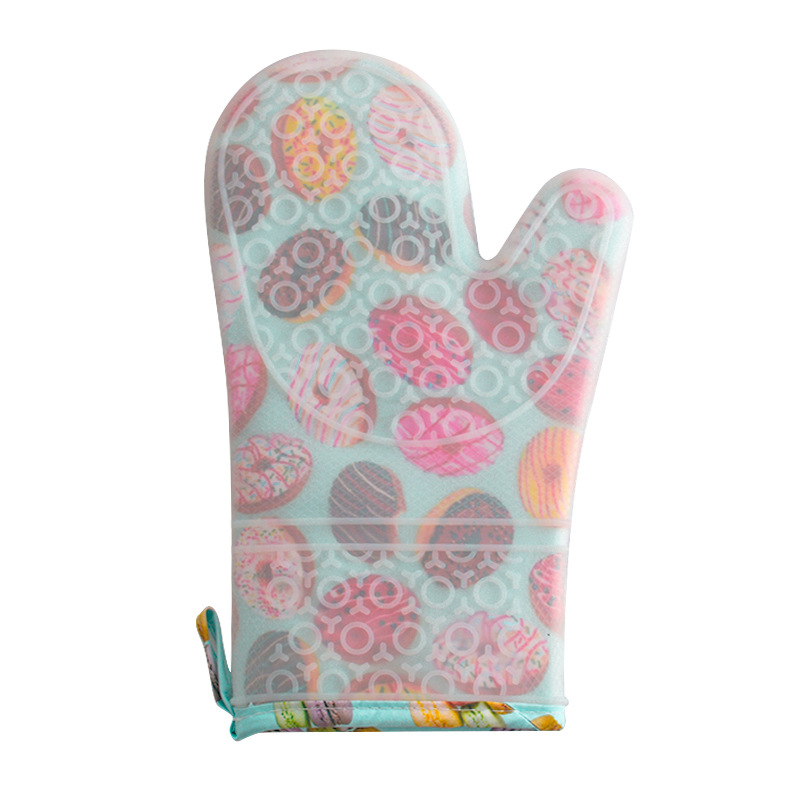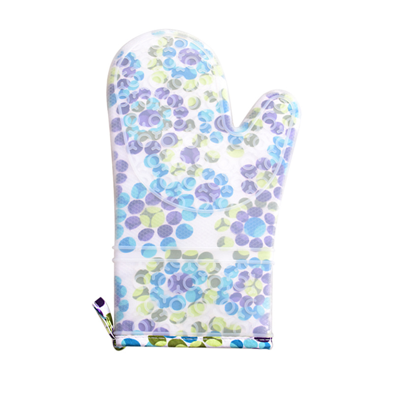 圆圈花布加棉加厚隔热防烫耐高温烤箱烘焙烧烤微波炉厨房硅胶手套
