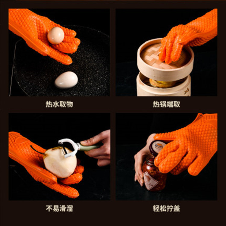 硅胶隔热手套烤箱防烫手套微波炉手套灵活五指硅胶手套