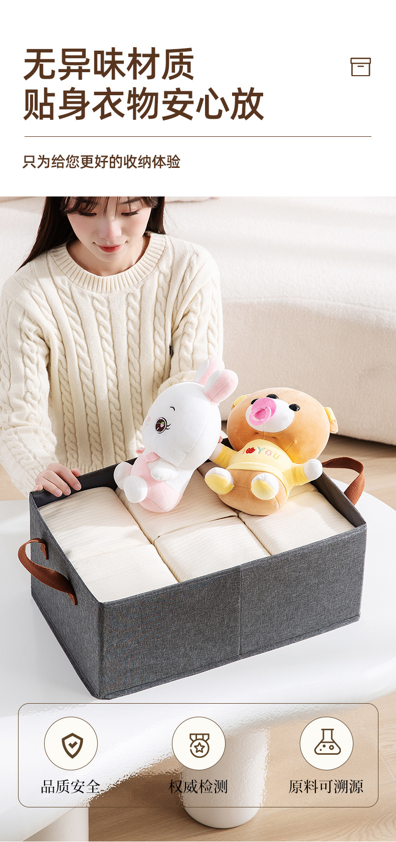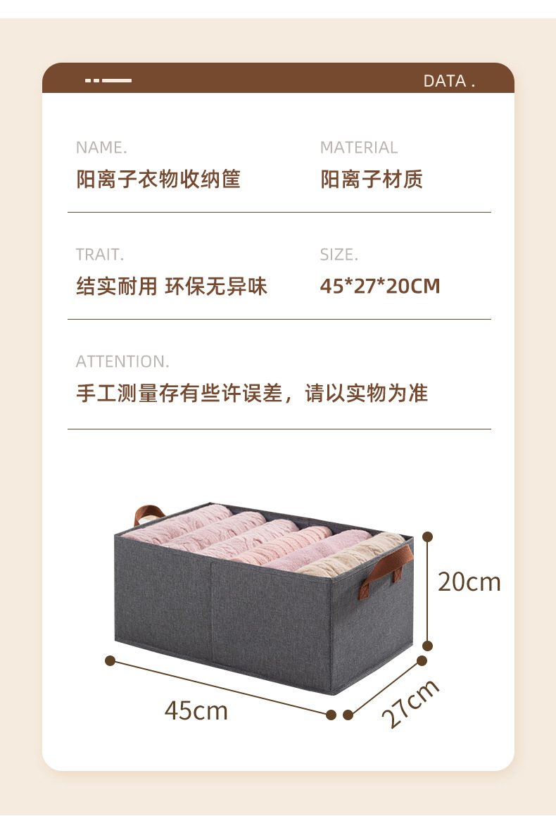 阳离子收纳盒高提手收纳筐衣物整理用具杂物收纳折叠无盖收纳盒
