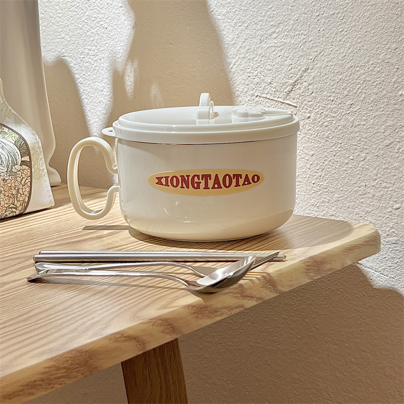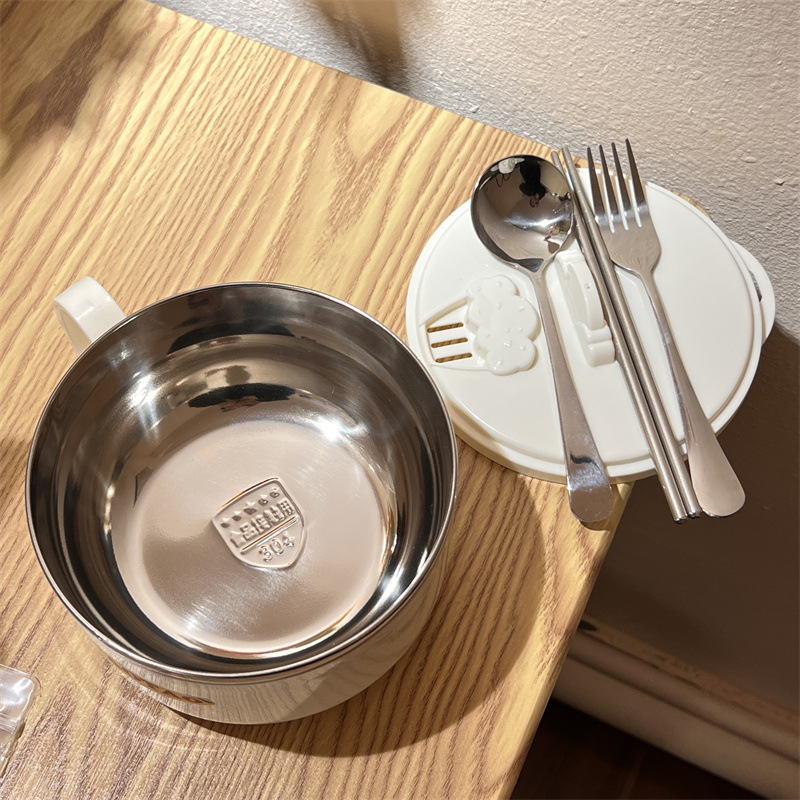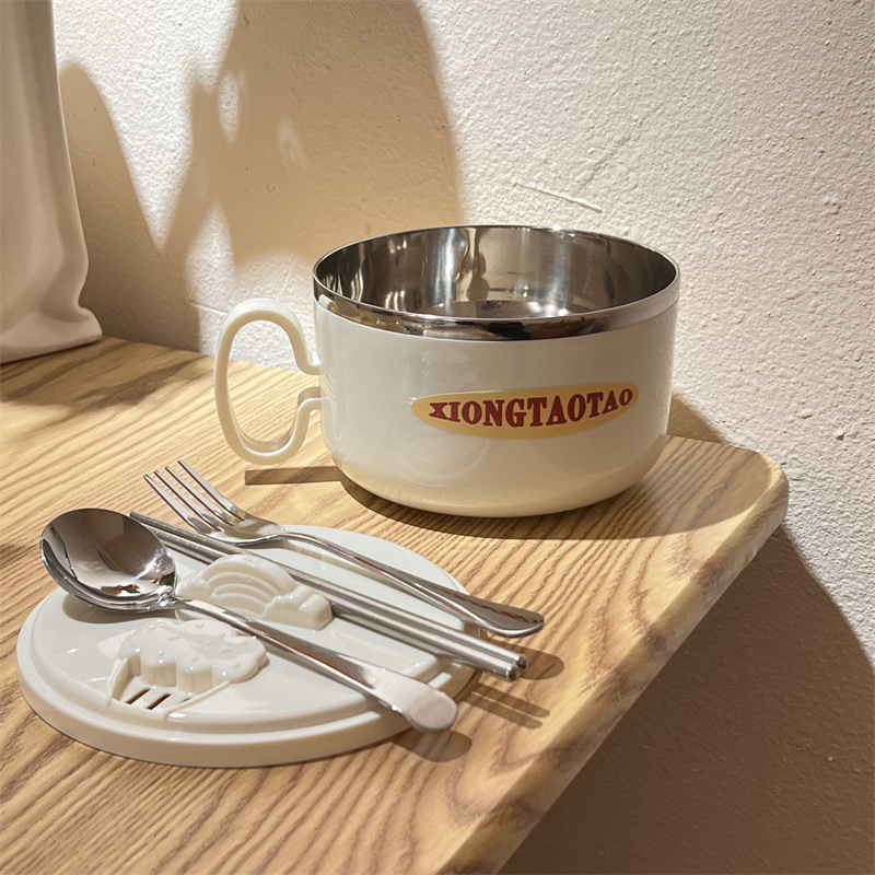 白XIONG304不锈钢泡面碗带盖学生宿舍可沥水ins日系大容量方