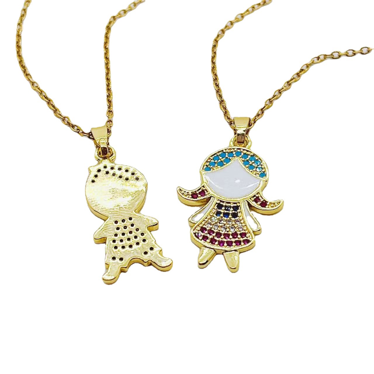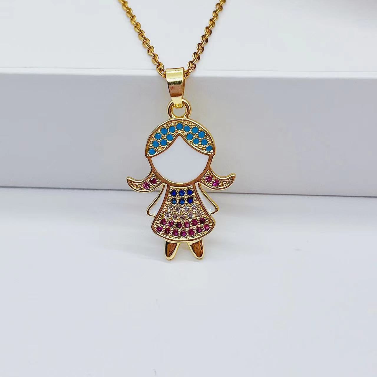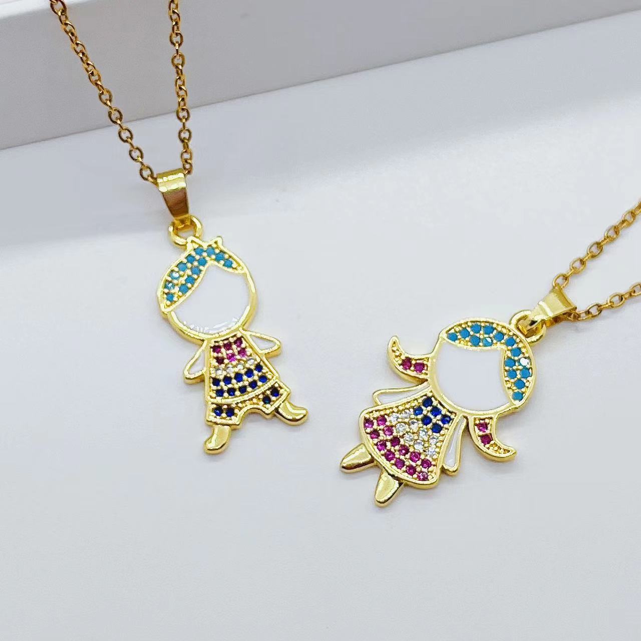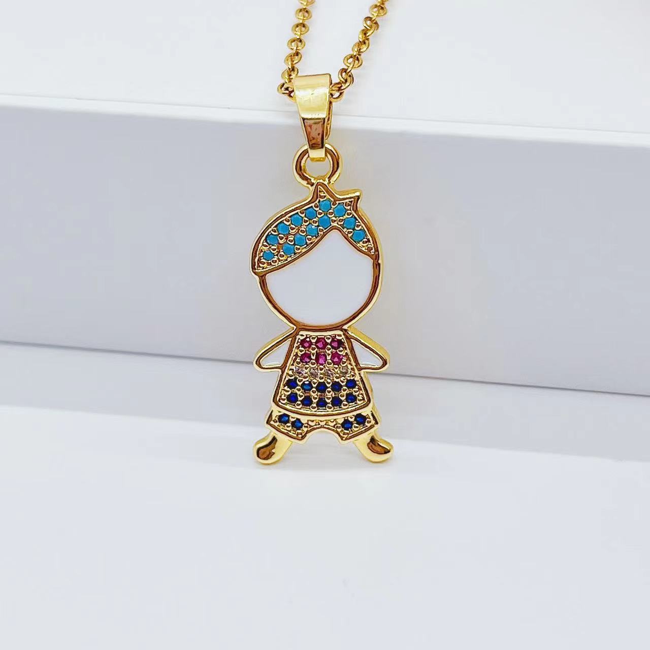欧美跨境 货源男孩女孩项链 可爱时尚锁骨链微镶彩锆铜镀真金直销