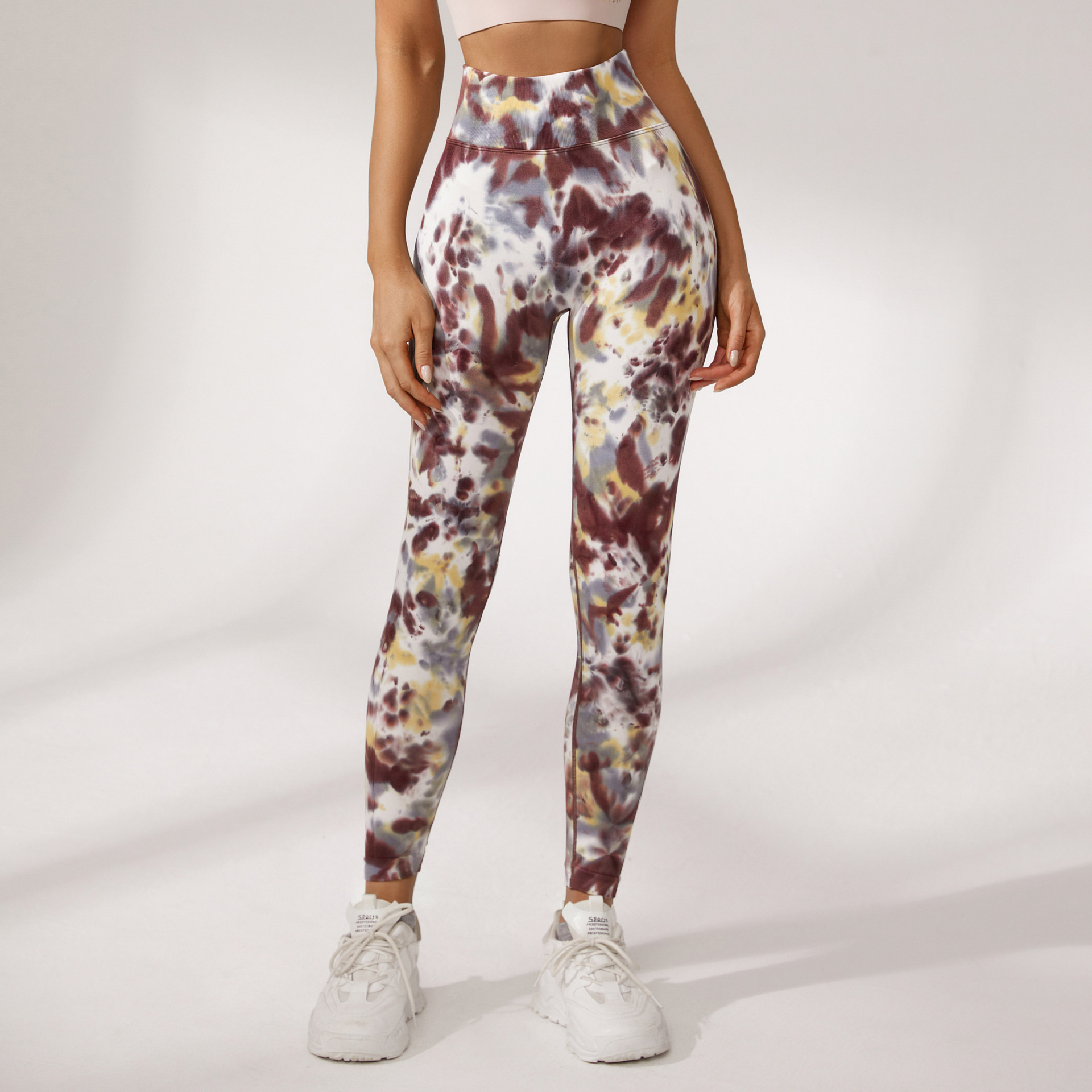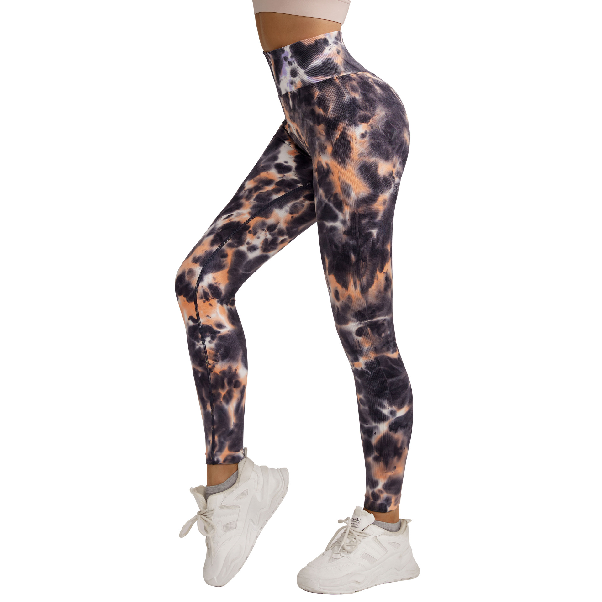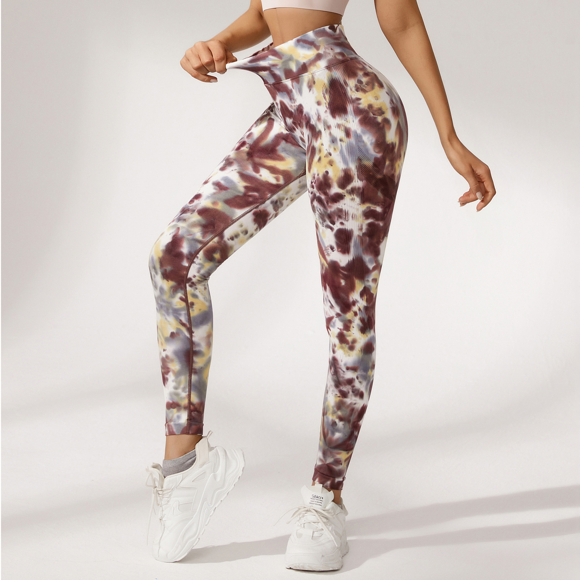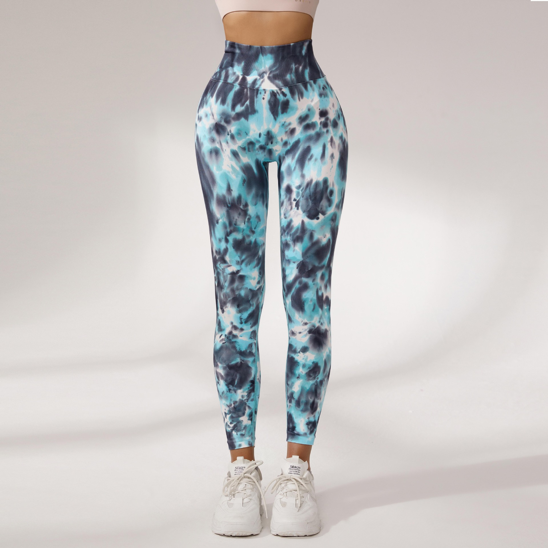 跨境欧美扎滴染无缝瑜伽裤高腰收腹跑步运动裤外穿蜜桃提臀健身裤