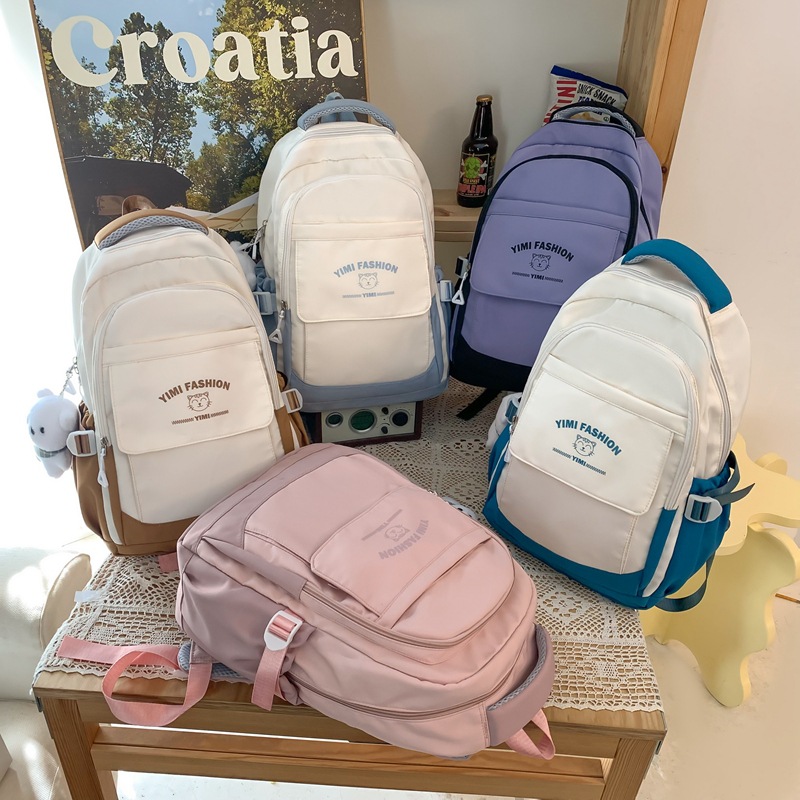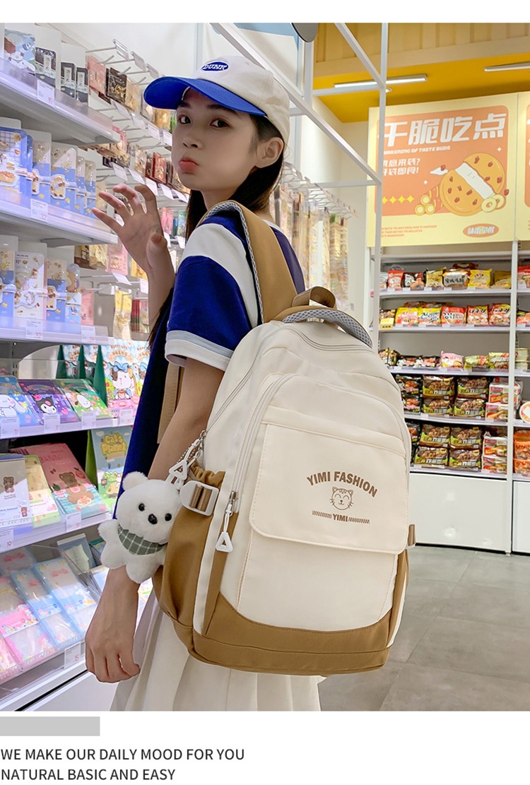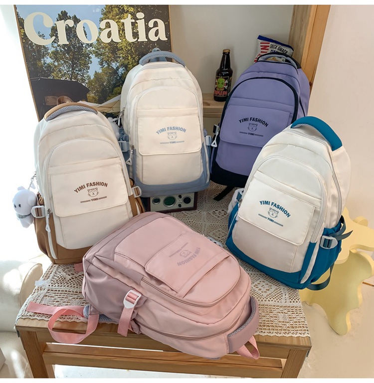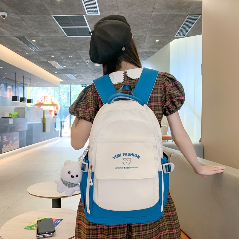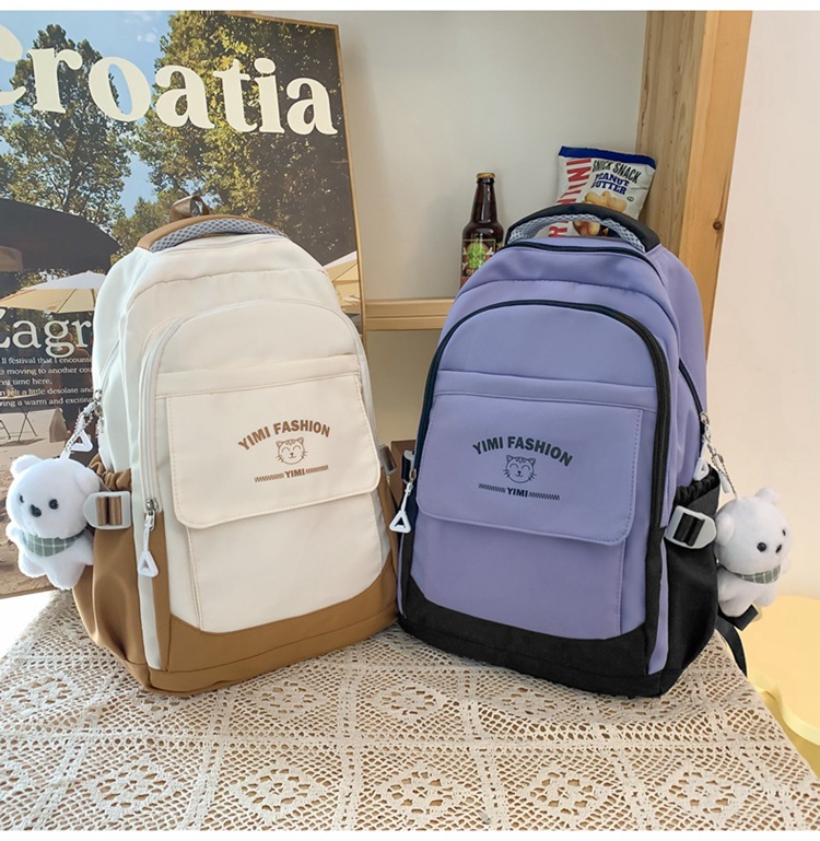 新款书包女初中学生高中生轻便校园撞色双肩包旅行背包