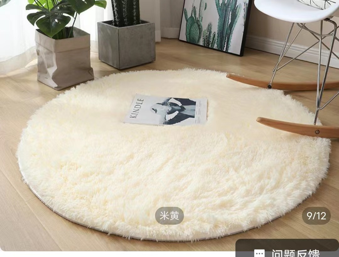 卧室纯色圆形丝毛地毯北欧简约客厅沙发毛绒地垫防滑垫门口垫