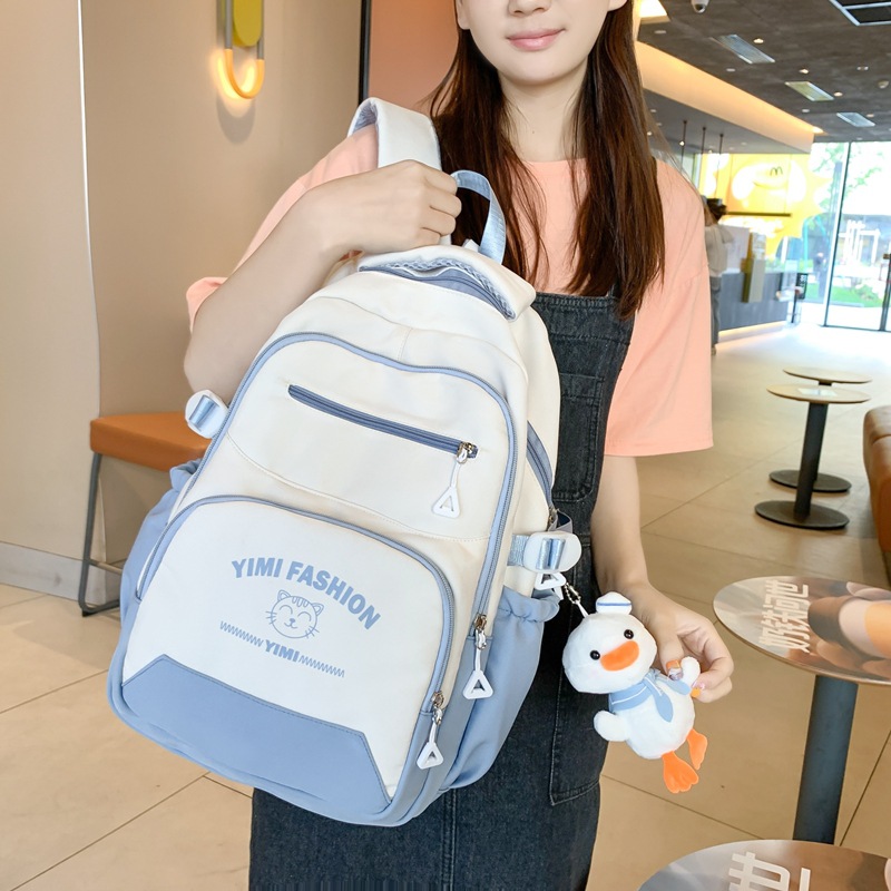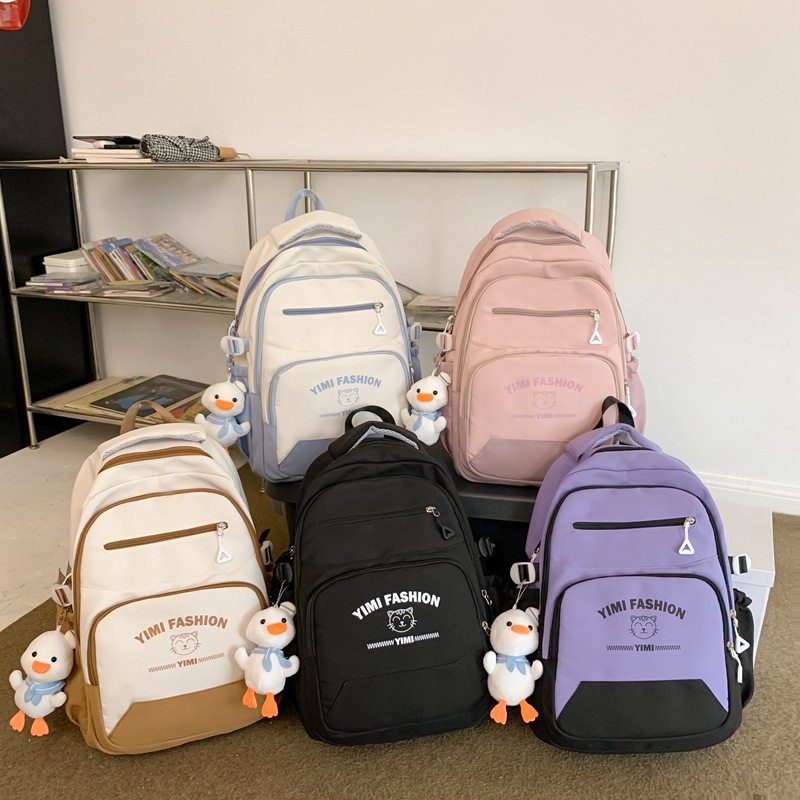 时尚新款拼色学生书包高中生大学生双肩包批发