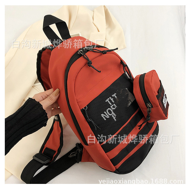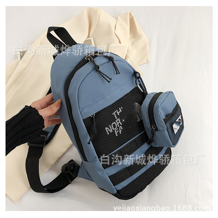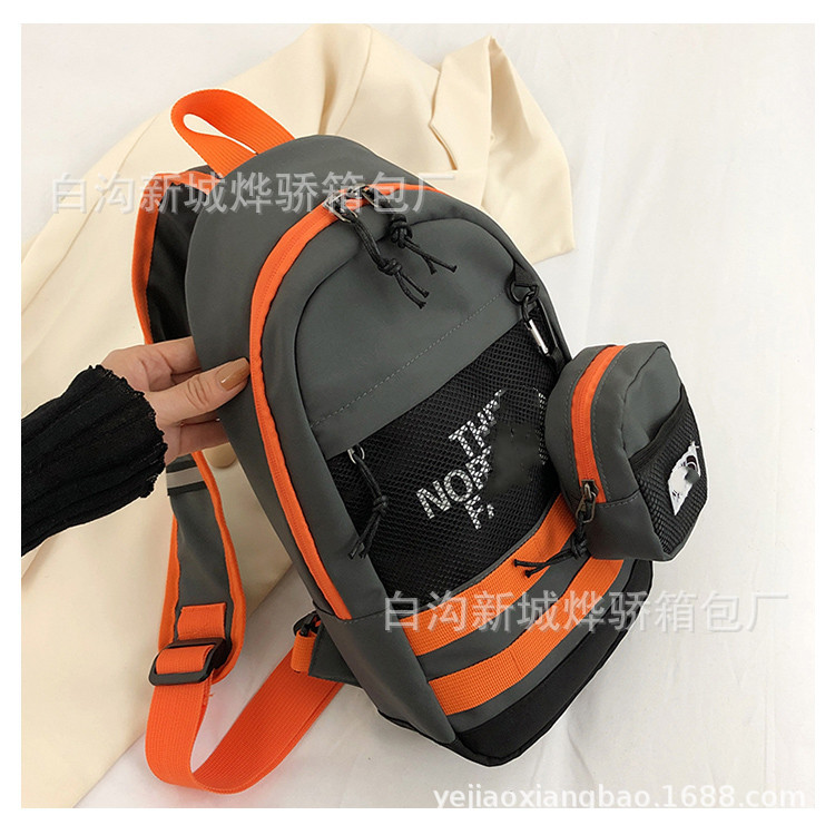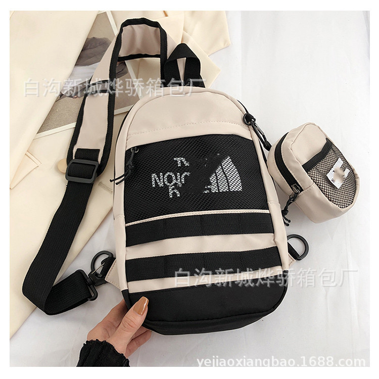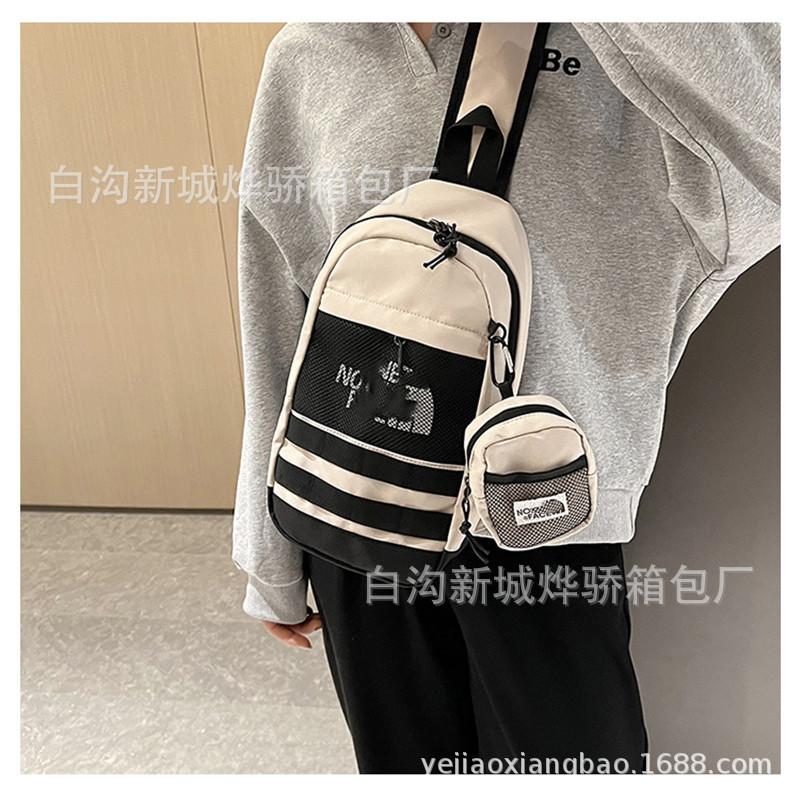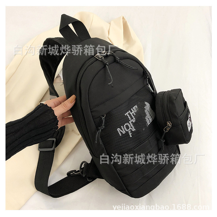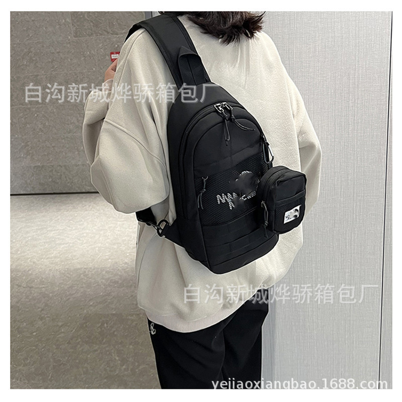 潮牌斜挎包男款运动背包街头潮酷字母印花胸包 时尚大容量背包男