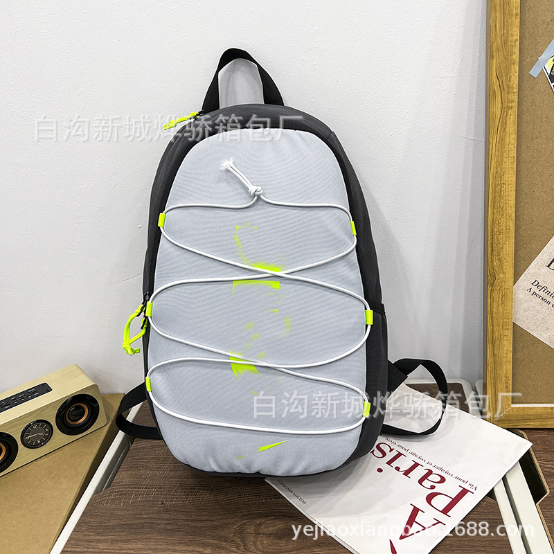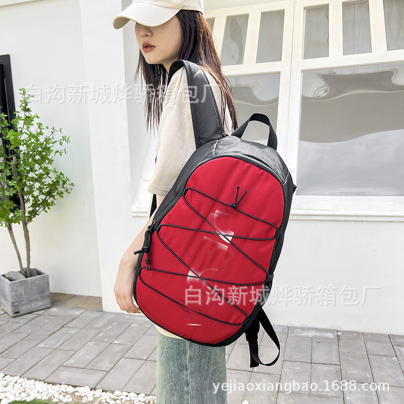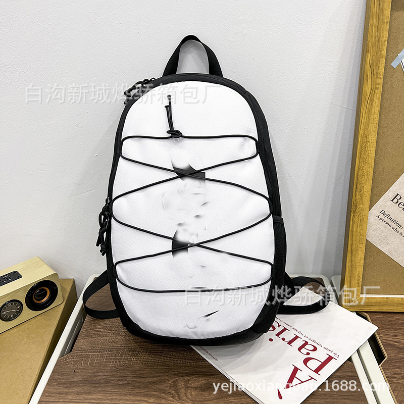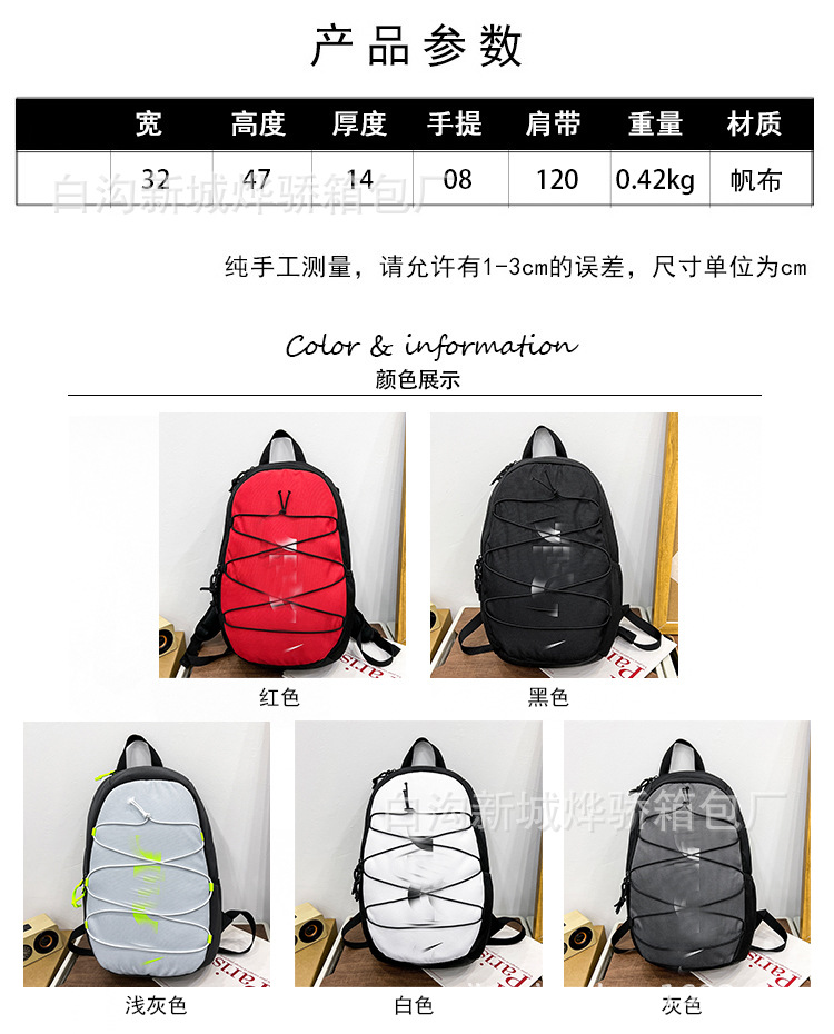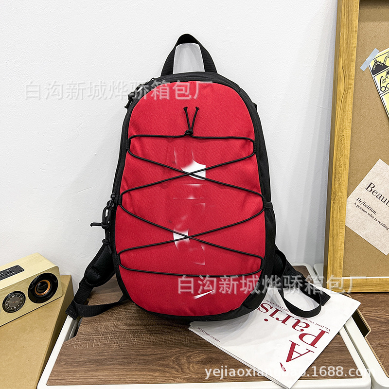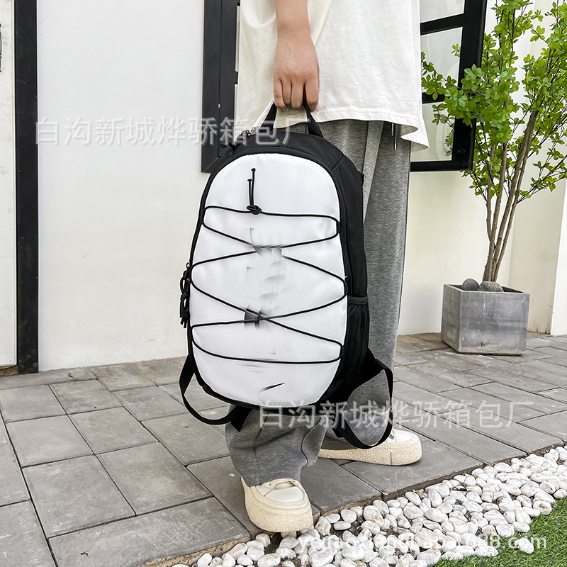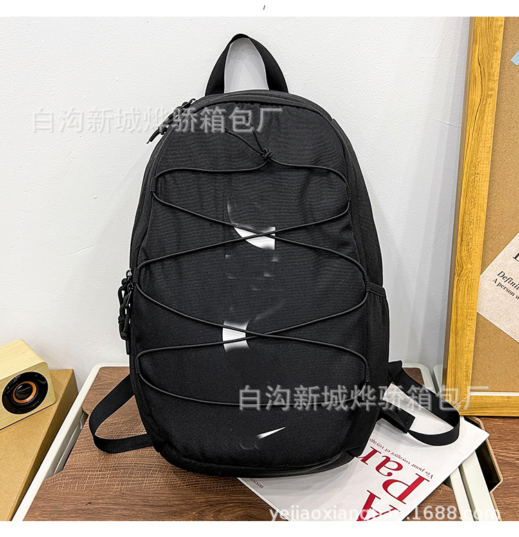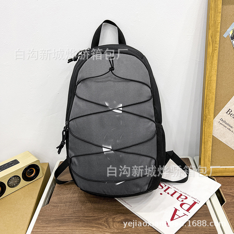 2023新款潮牌学生书包韩版大容量休闲旅行男士背包时尚绑带双肩包