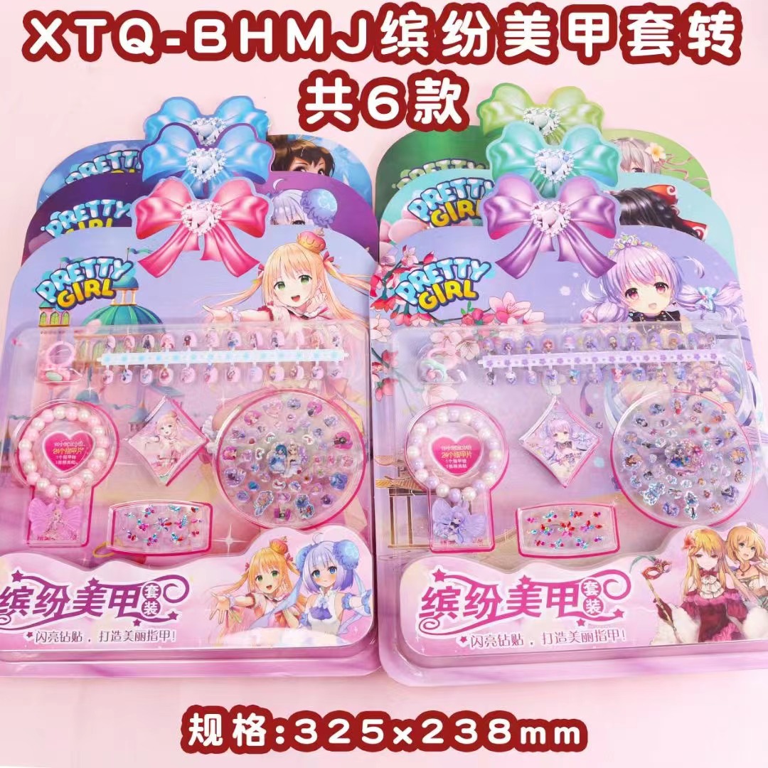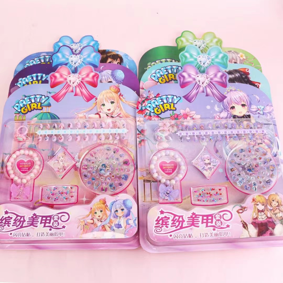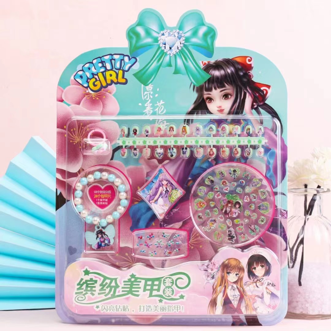 直销缤纷美甲套装手链戒指亚克力贴高清可爱指甲贴女孩美甲贴批发
