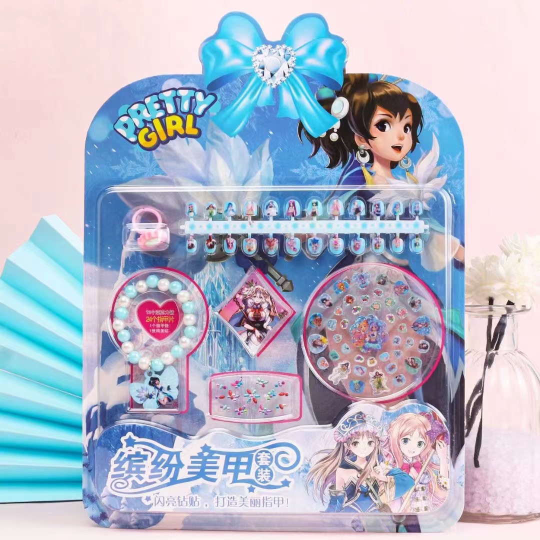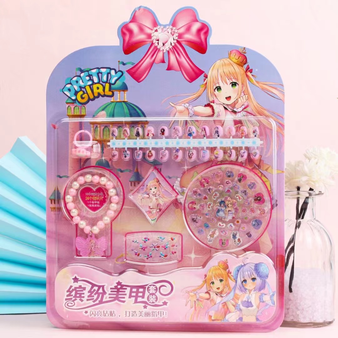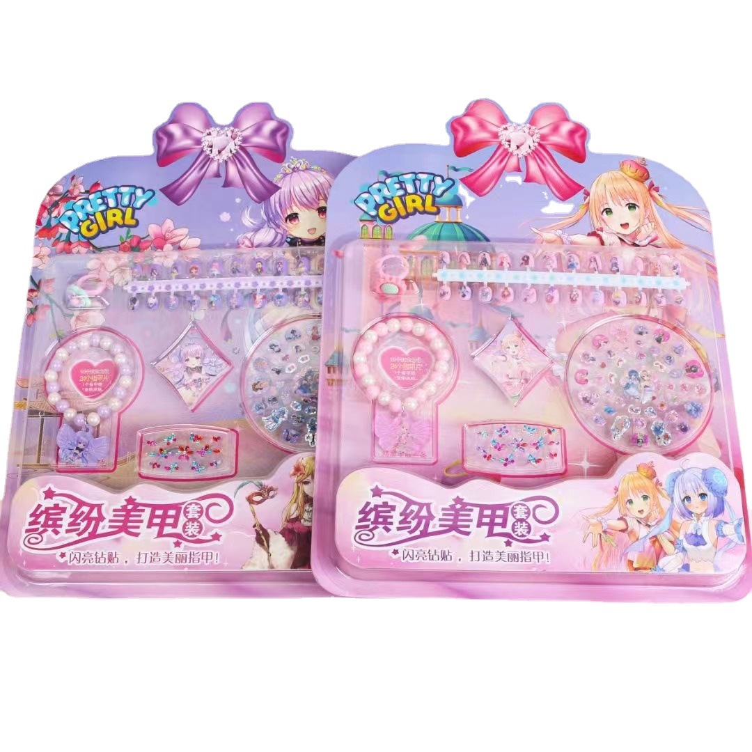 直销缤纷美甲套装手链戒指亚克力贴高清可爱指甲贴女孩美甲贴批发