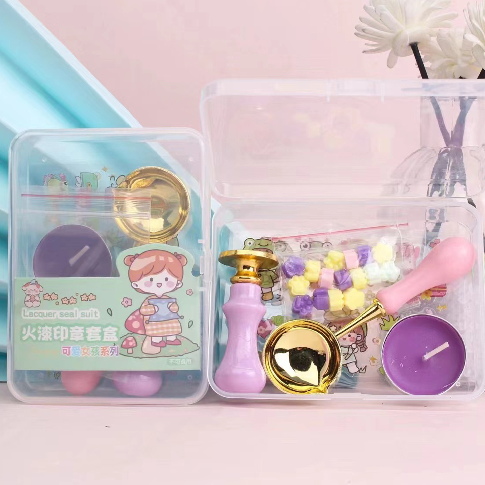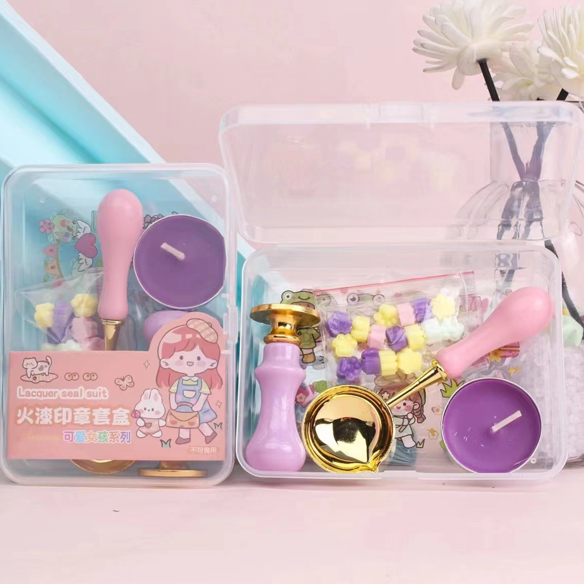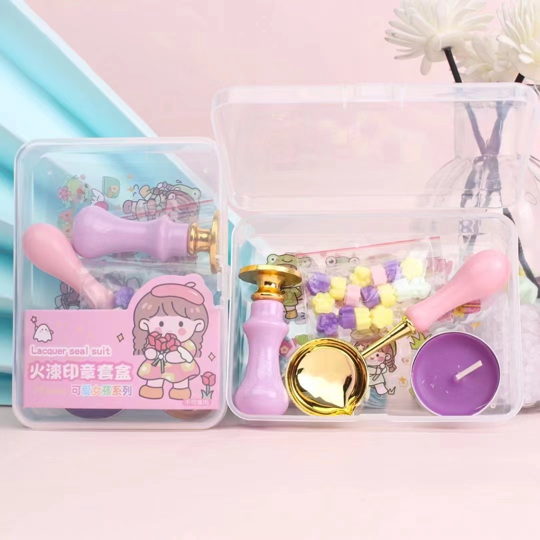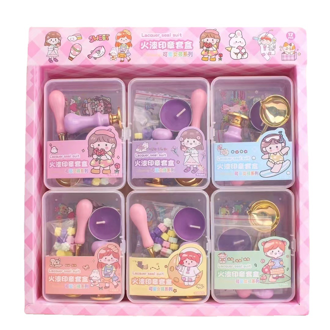新款火漆印章套装可爱女孩系列火漆印章套盒手账贴纸多色蜡粒批发