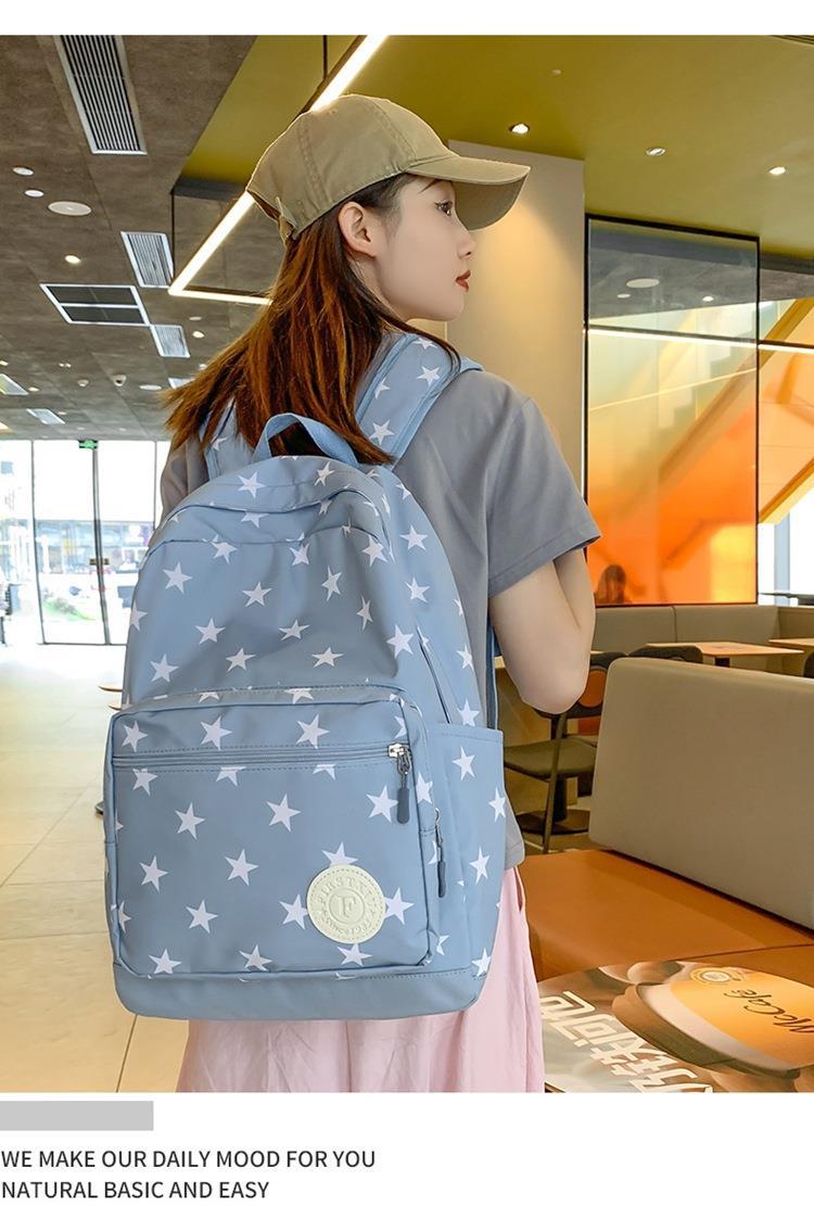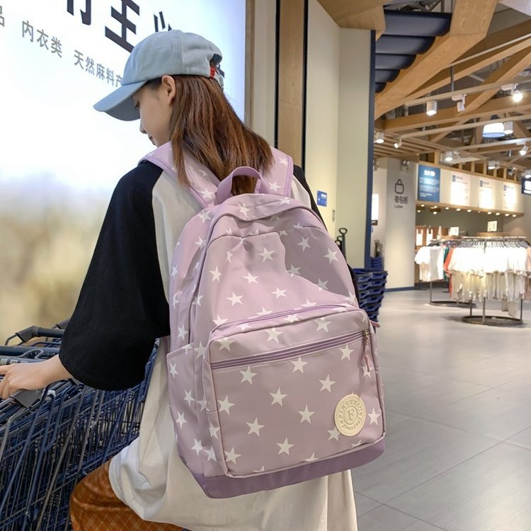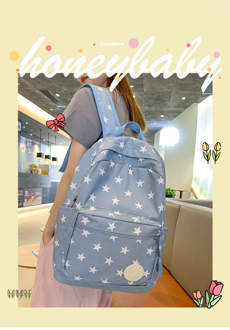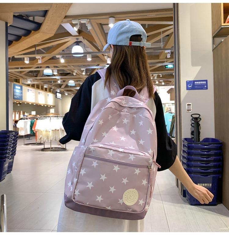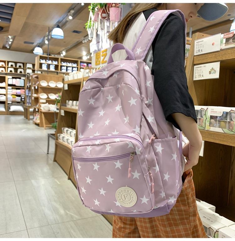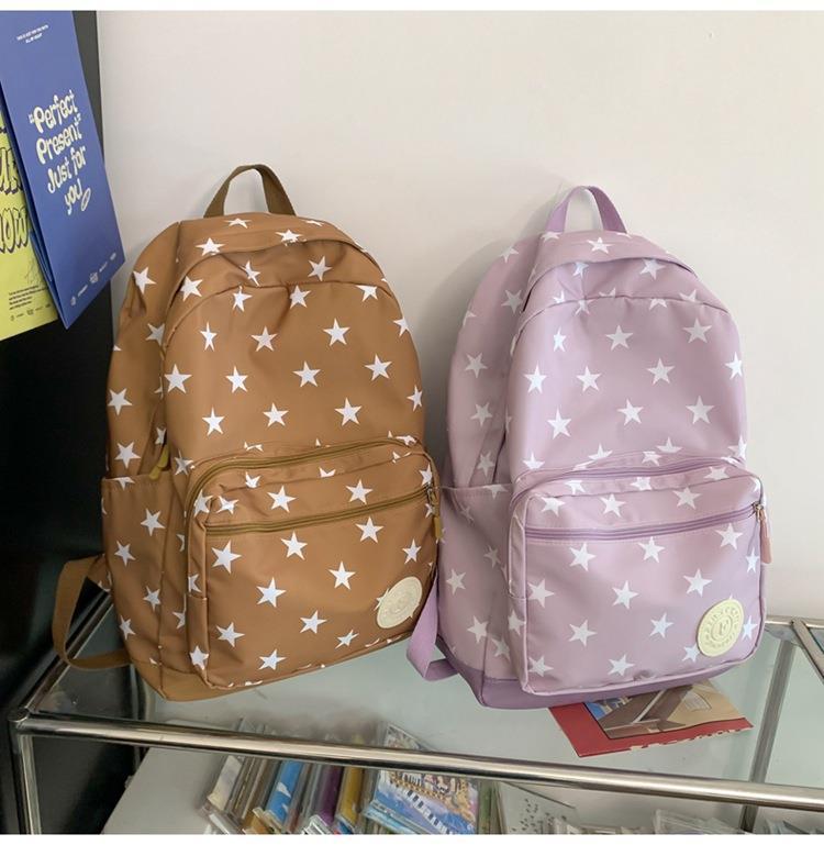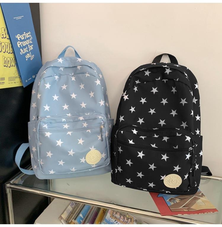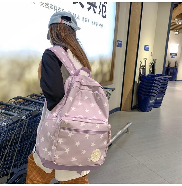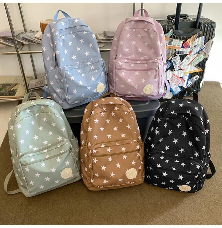 新款初中学生生书包女ins少女旅行背包星星印花双肩包