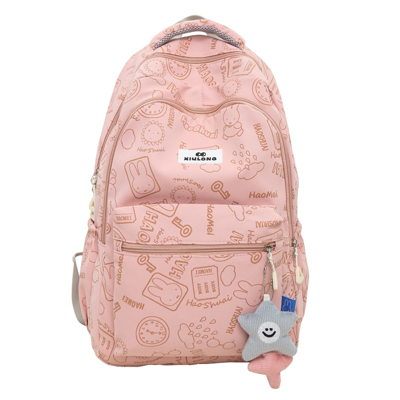双肩包女小清新中学生书包休闲印花简约背包