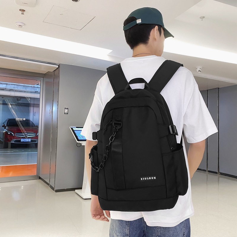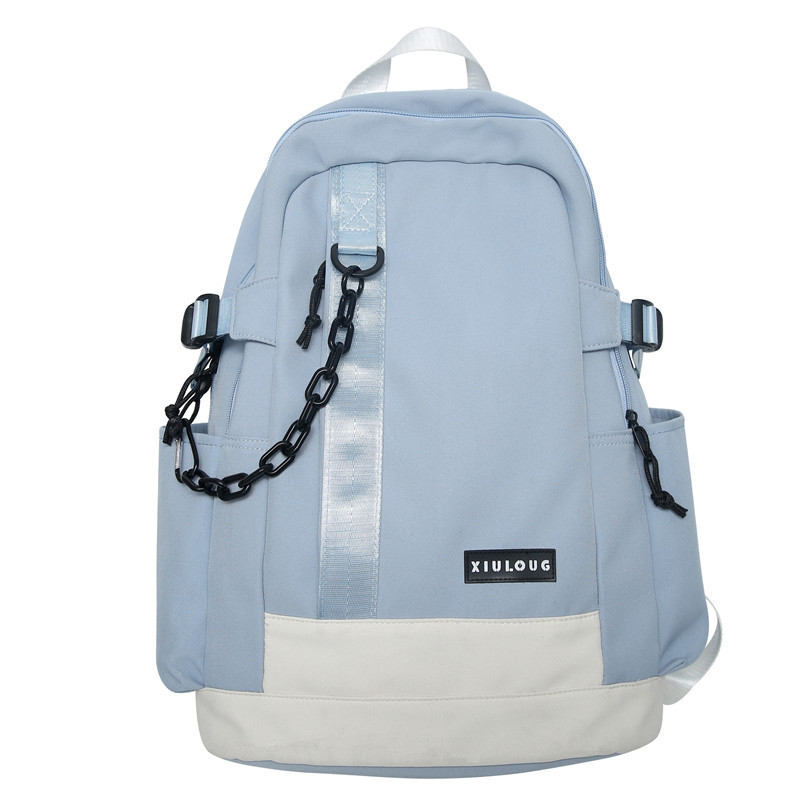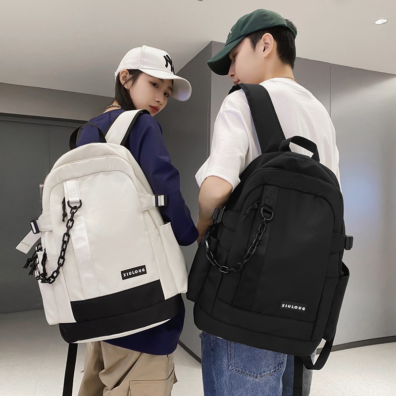 新款街头潮流情侣背包时尚书包女高中生拼色双肩包