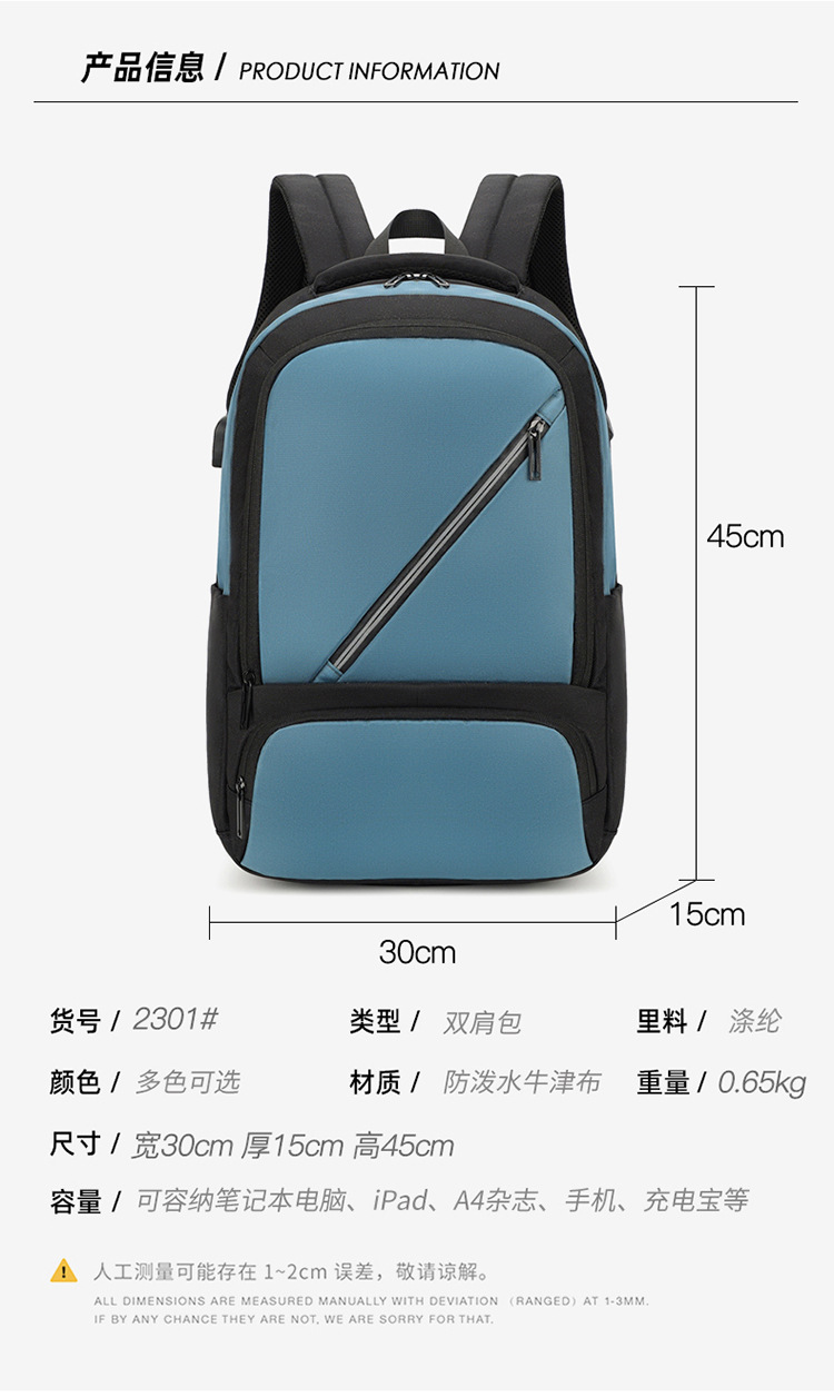 新款男士商务双肩包户外旅行男士书包usb电脑背包休闲背包