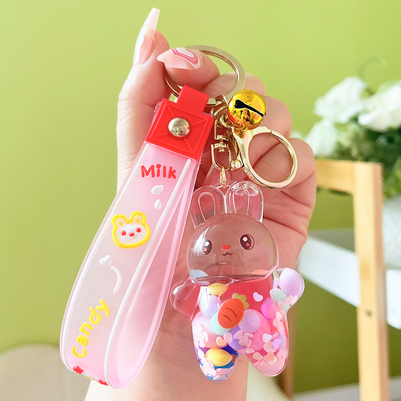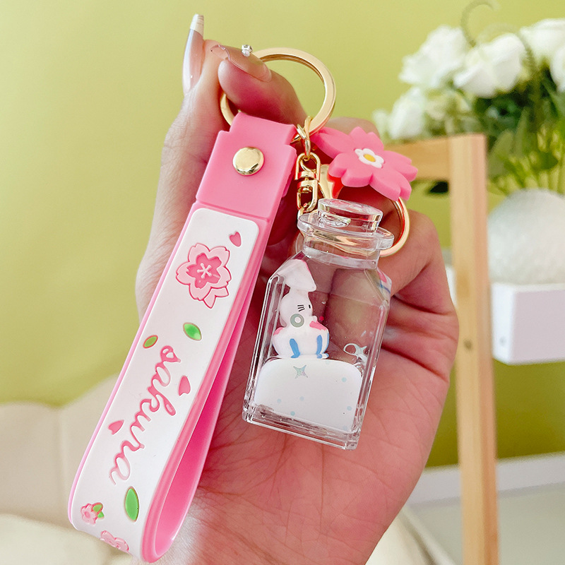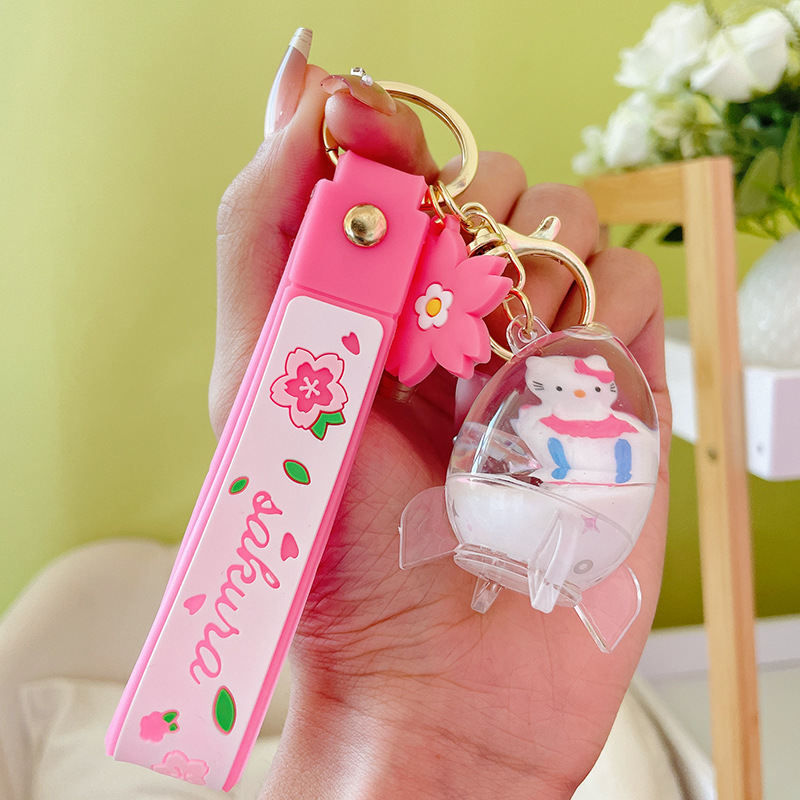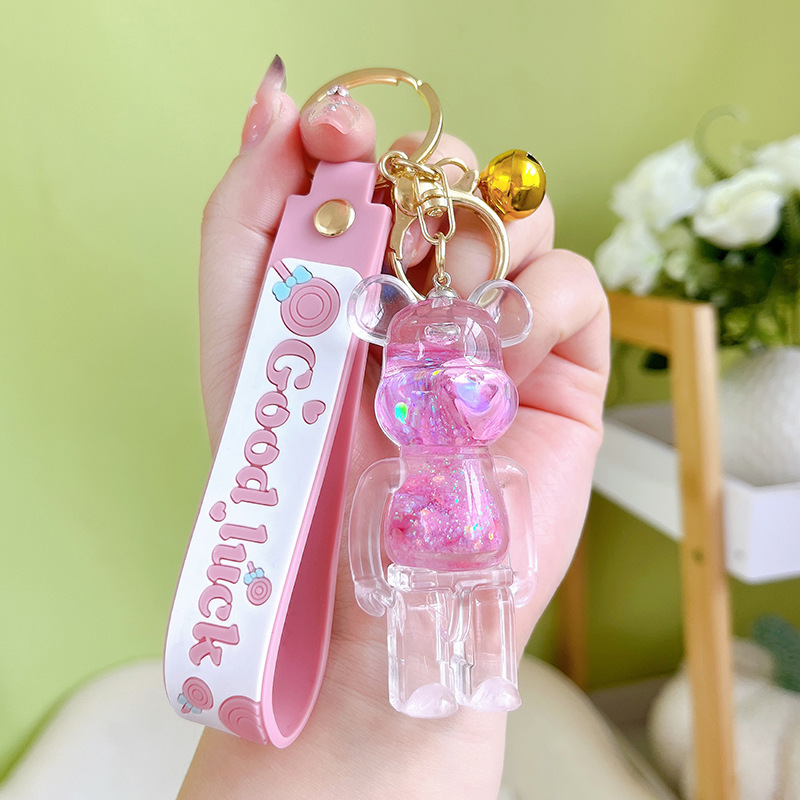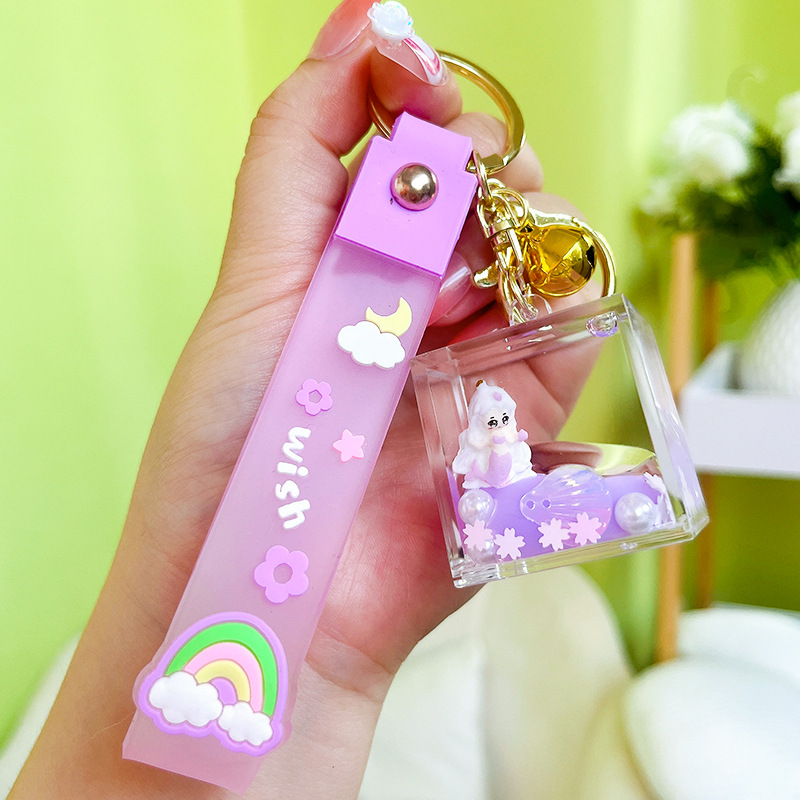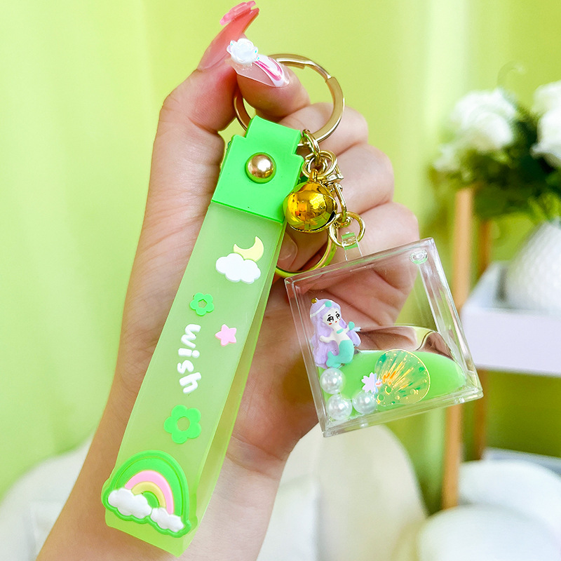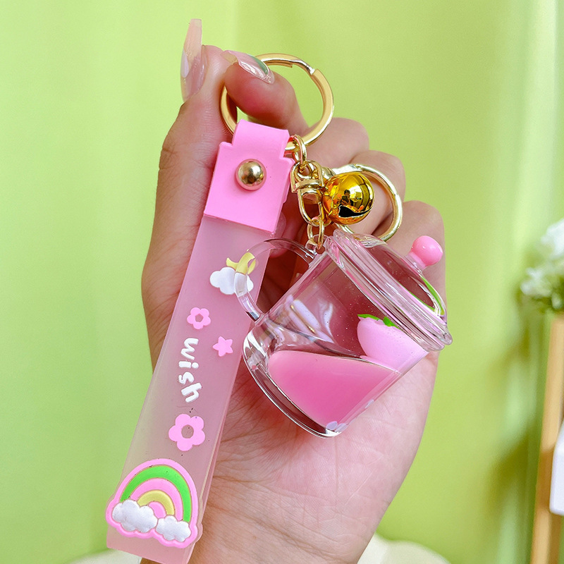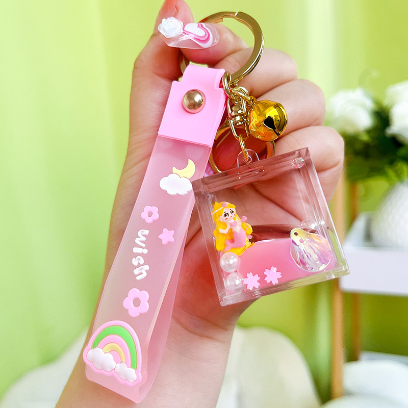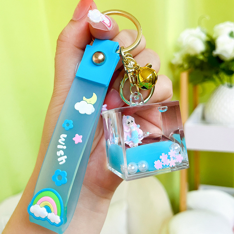 卡通入油漂浮亚克力流沙瓶钥匙扣汽车包包钥匙链挂件创意礼品批发