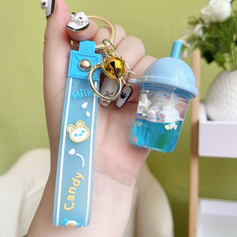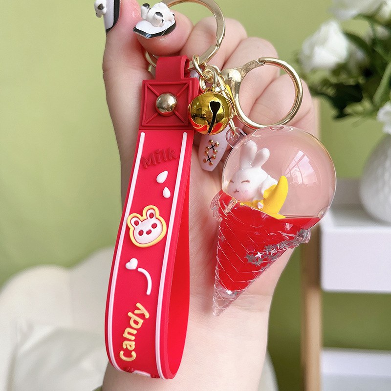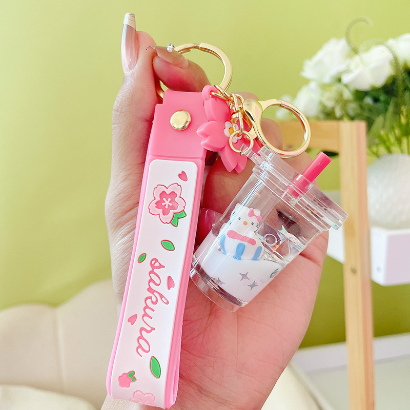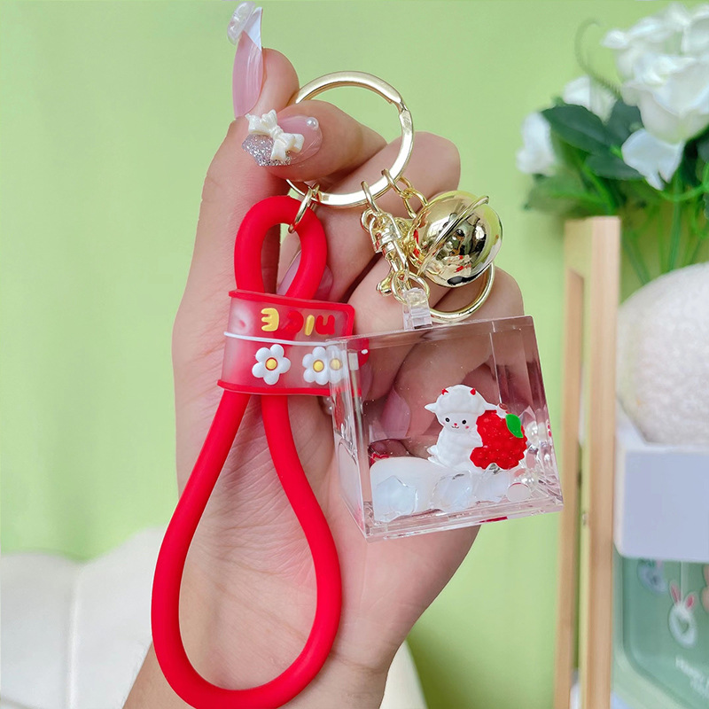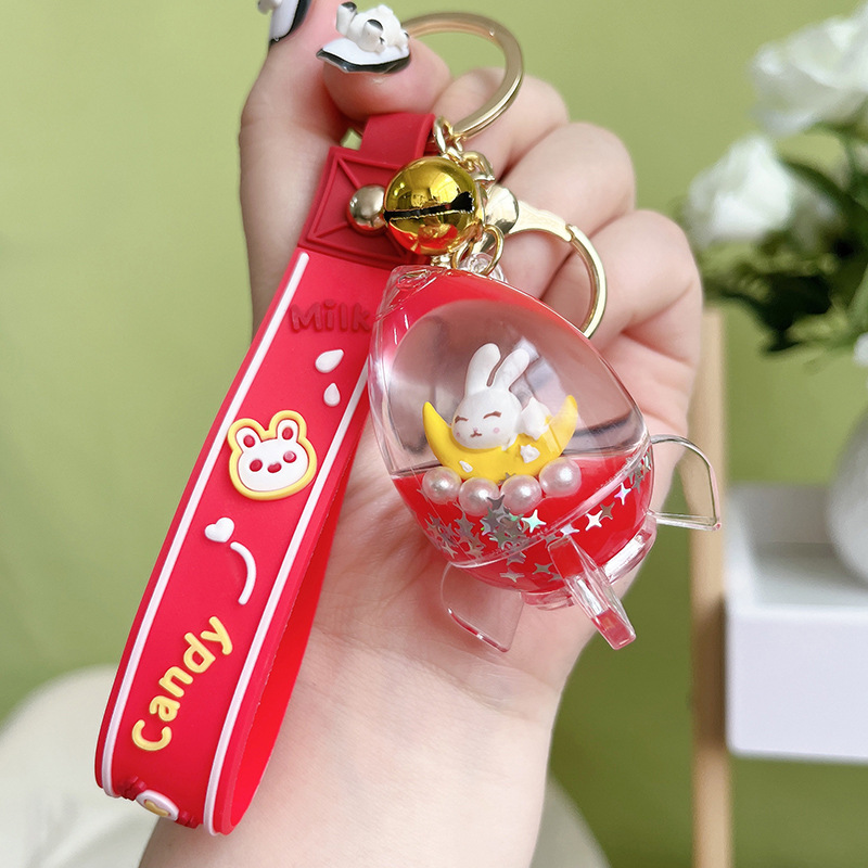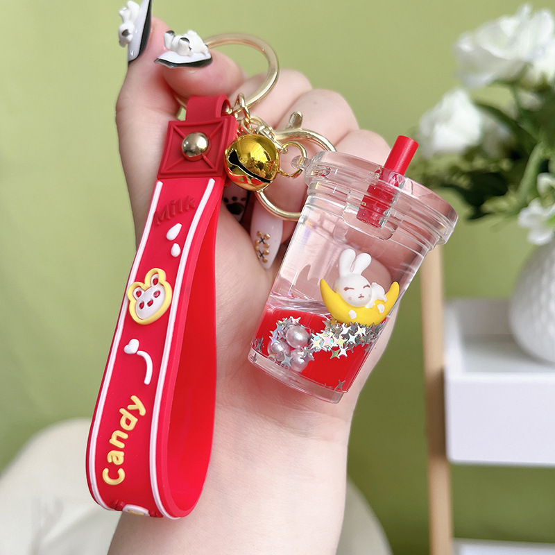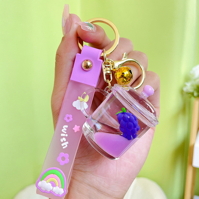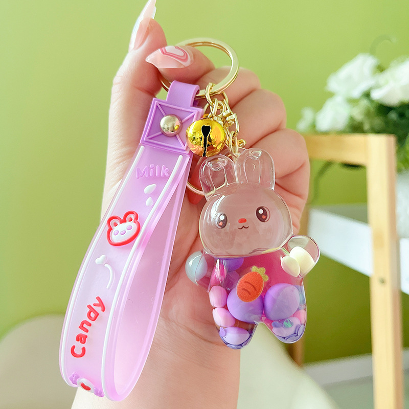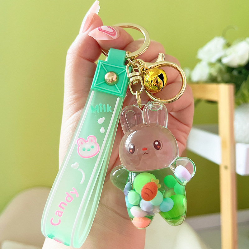 卡通入油漂浮亚克力流沙瓶钥匙扣汽车包包钥匙链挂件创意礼品批发