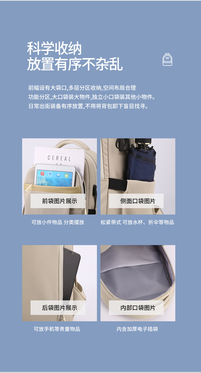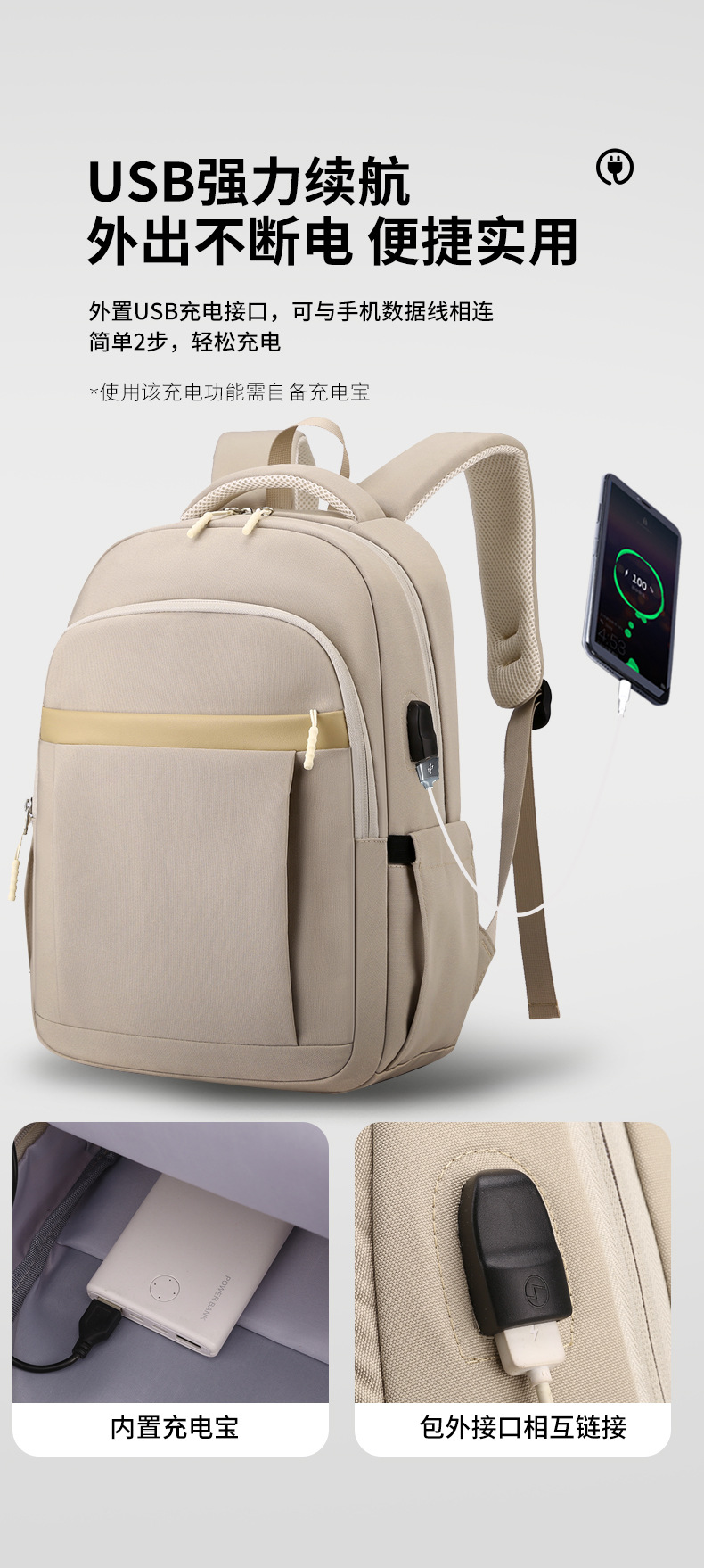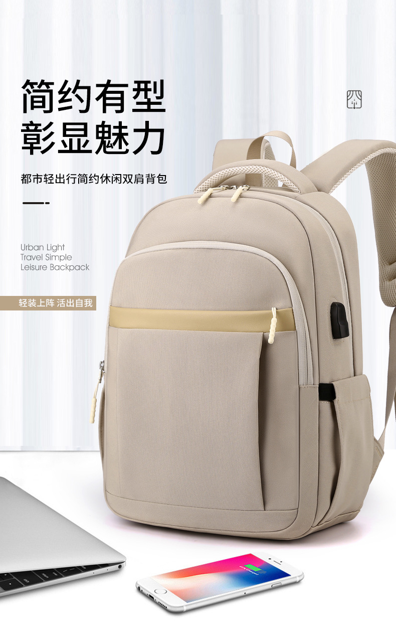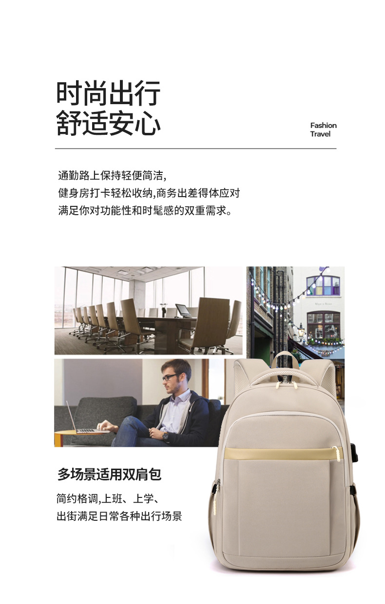 休闲简约双肩背包户外旅行包定印logo大学生书包USB接口双肩包