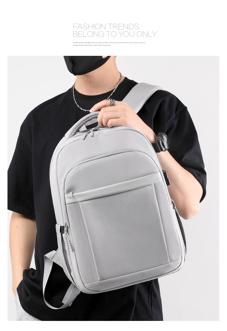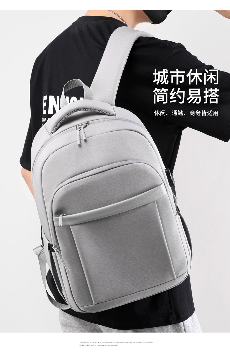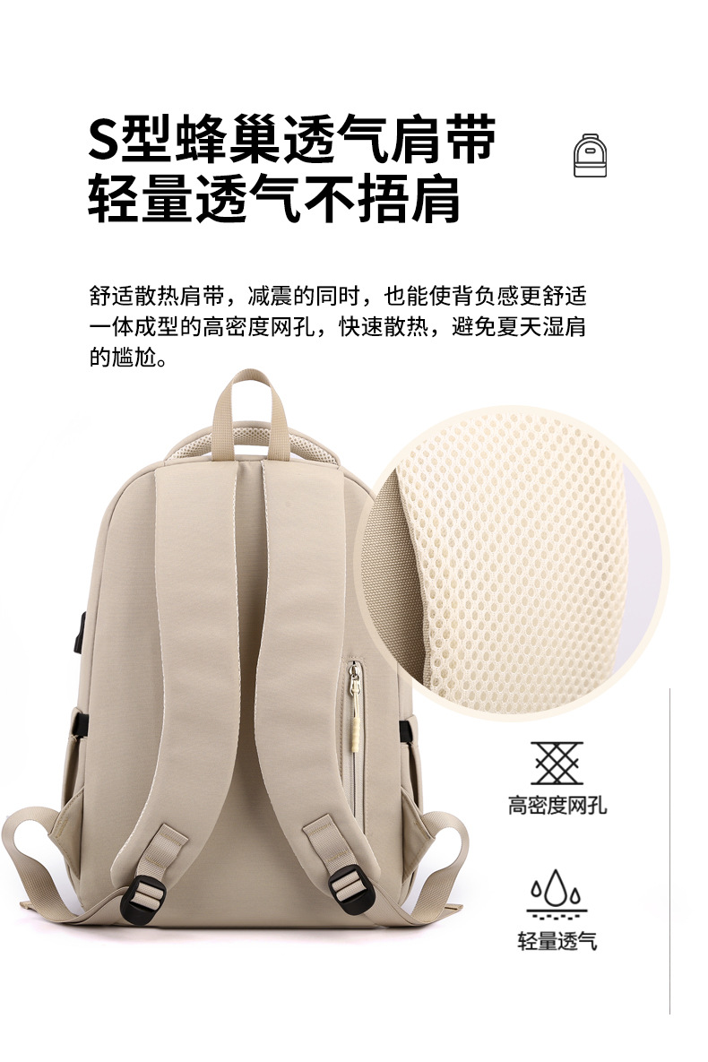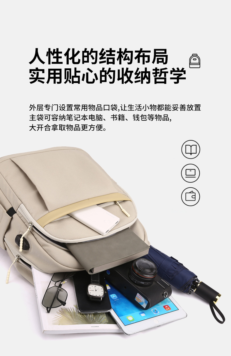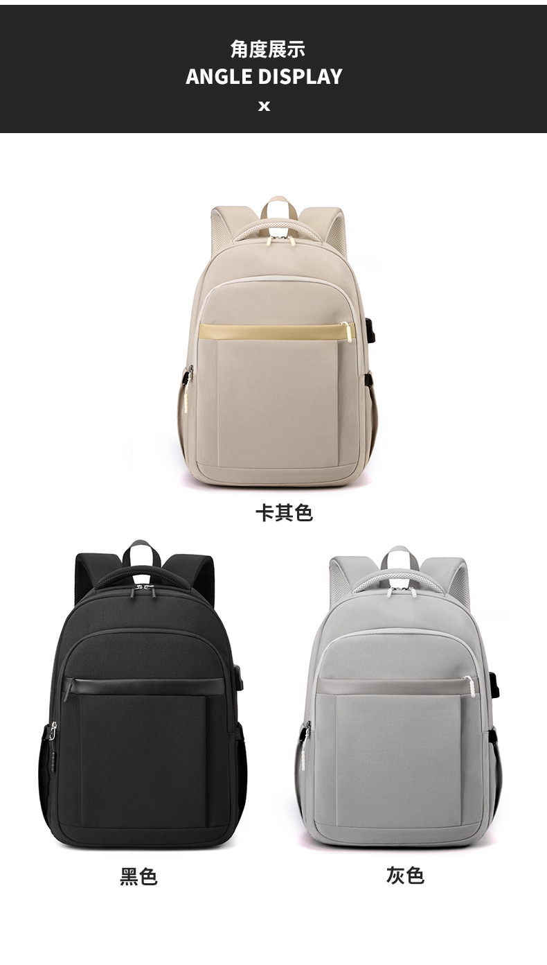 休闲简约双肩背包户外旅行包定印logo大学生书包USB接口双肩包