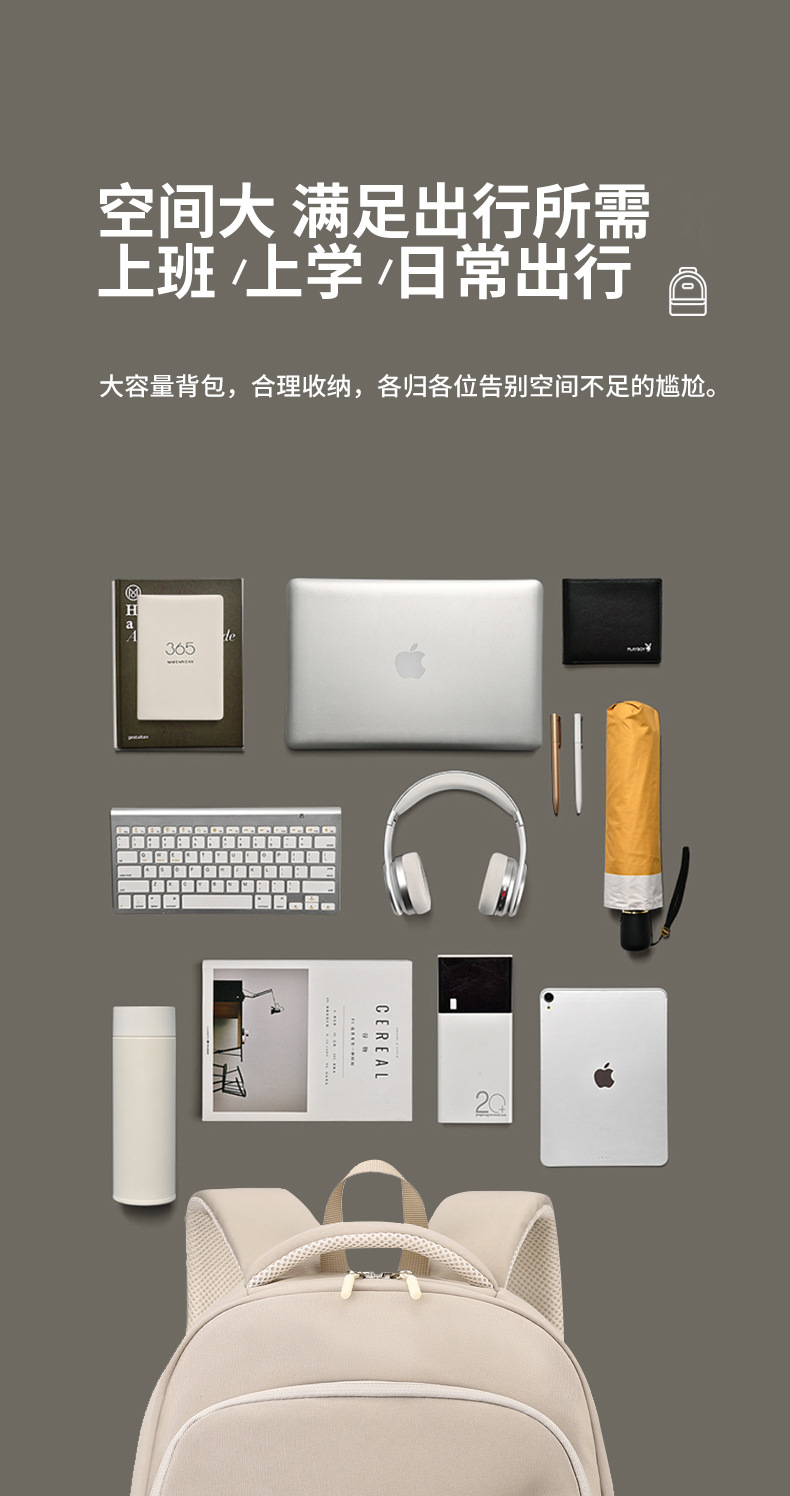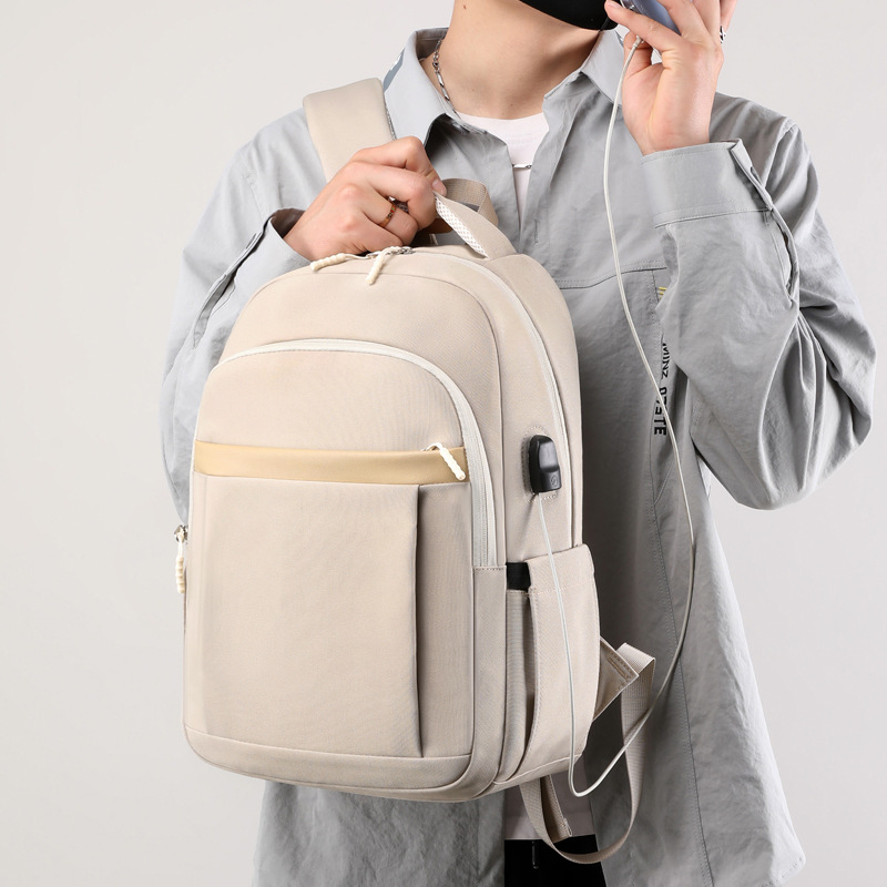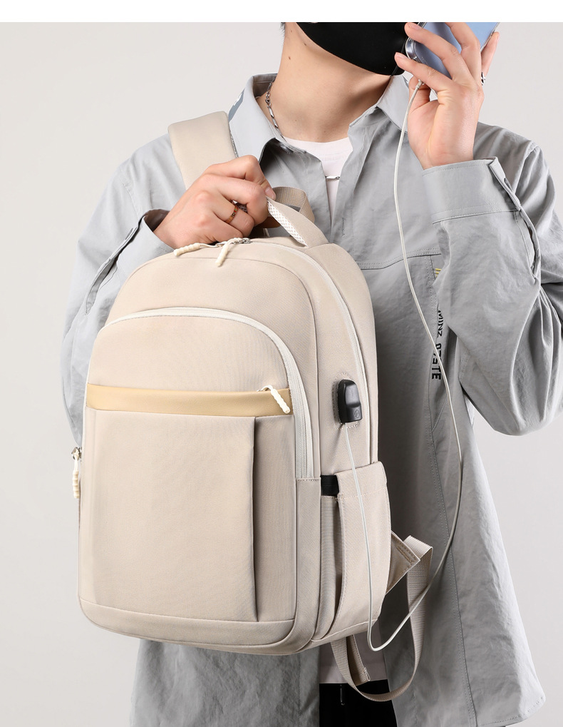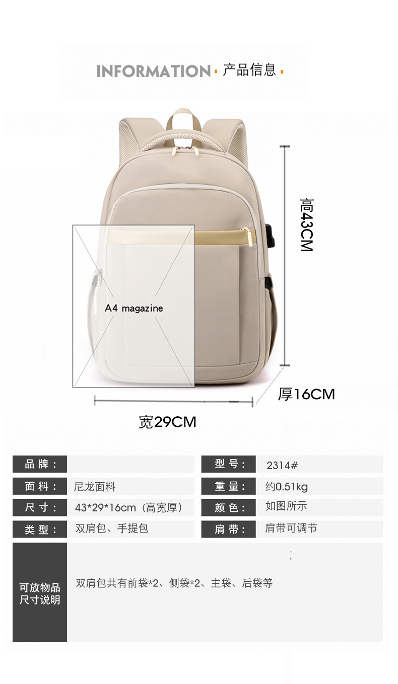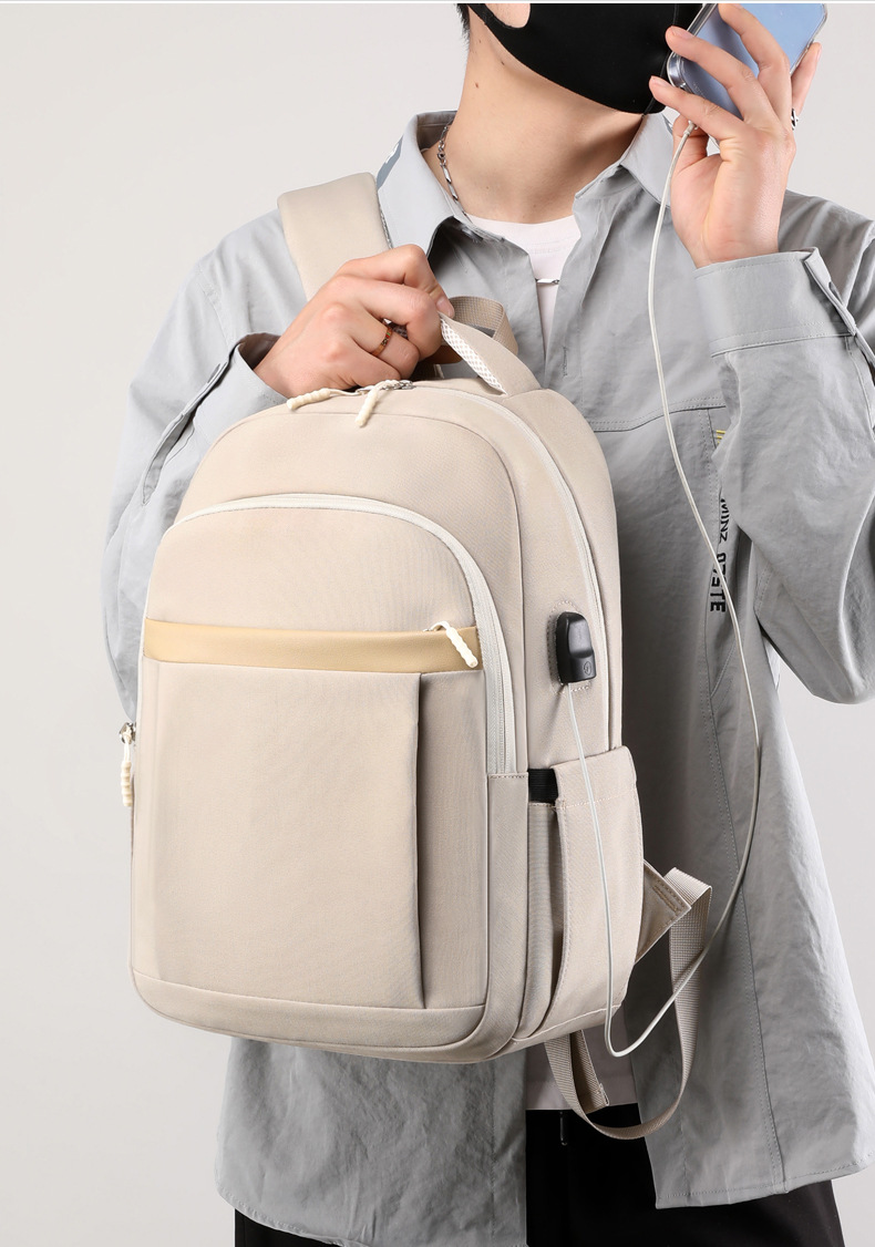 休闲简约双肩背包户外旅行包定印logo大学生书包USB接口双肩包