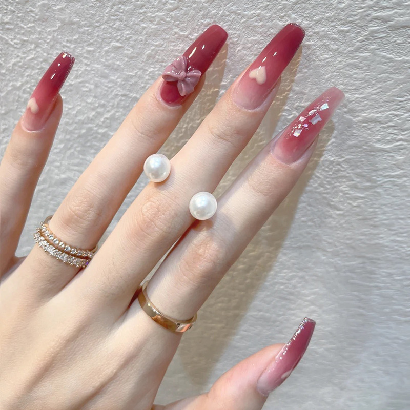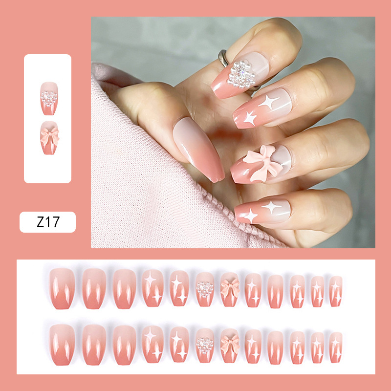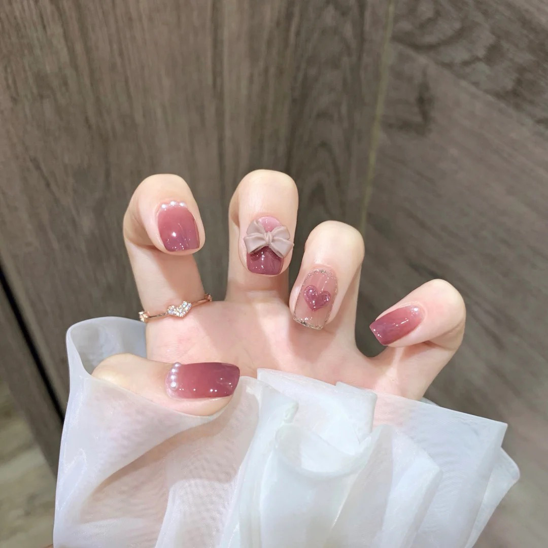 穿戴甲美甲贴片指甲贴可爱短款可拆卸假指甲贴片桃心蝴蝶结指甲片