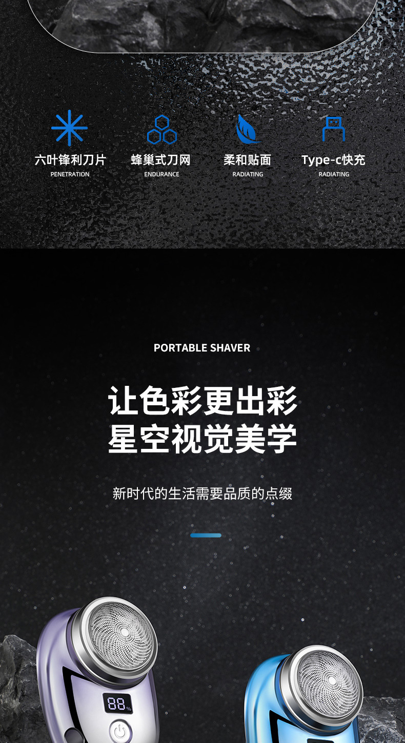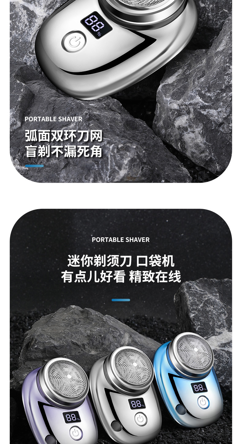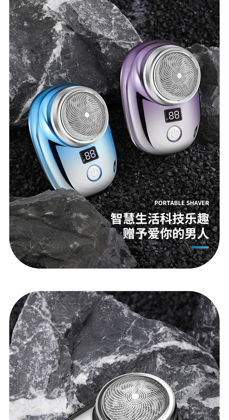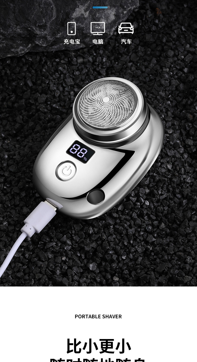 跨境新款迷你电动剃须刀小巧便携式车载智能数显USB充电男士剃须