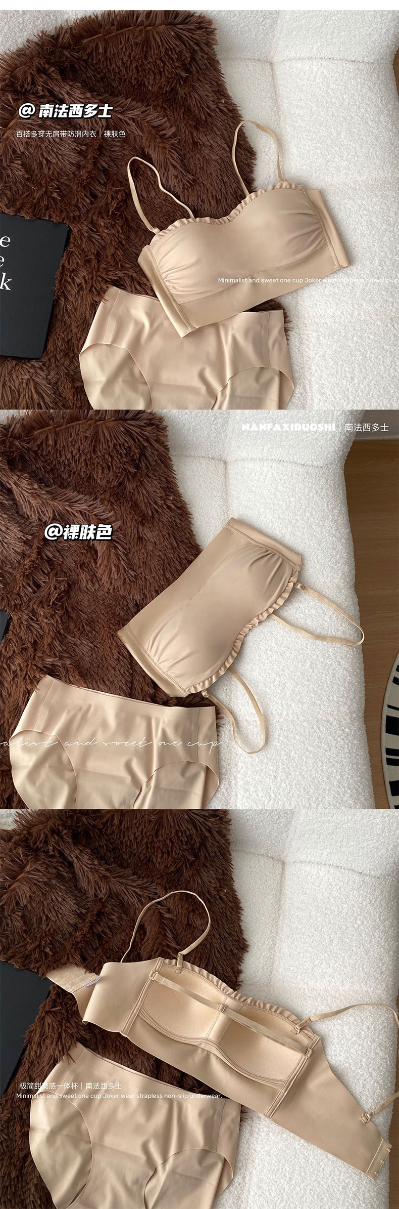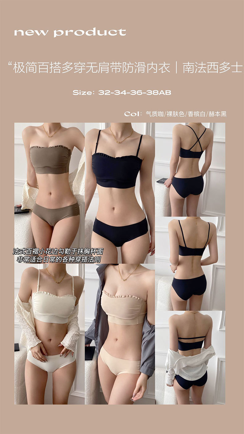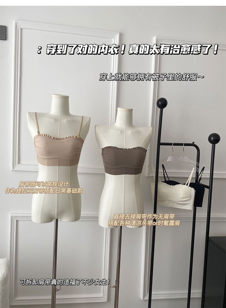 2023新款夏薄款无痕抹胸镂空悬浮杯无肩带美背内衣女聚拢文胸外贸