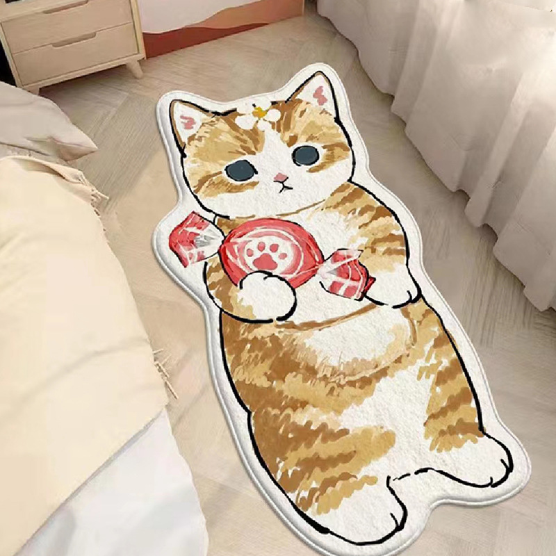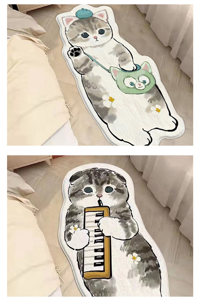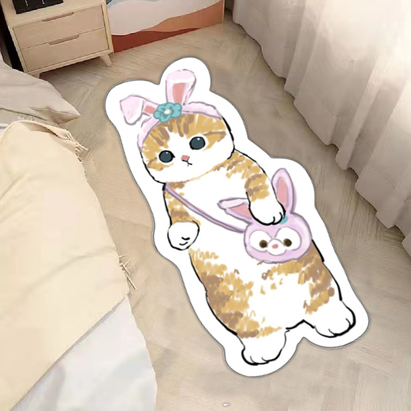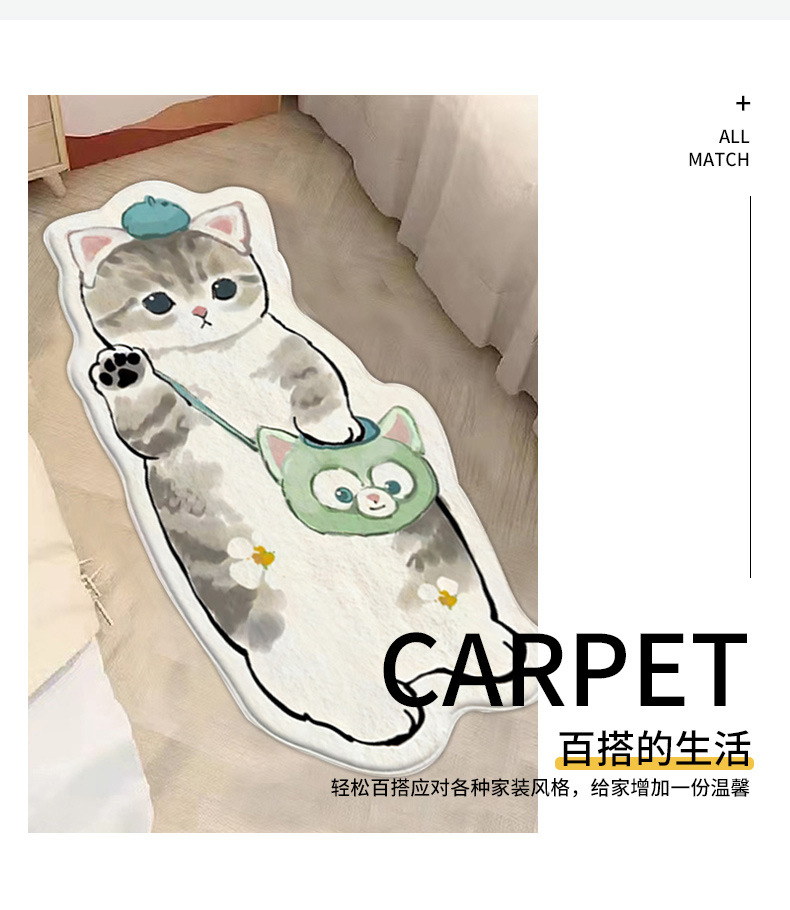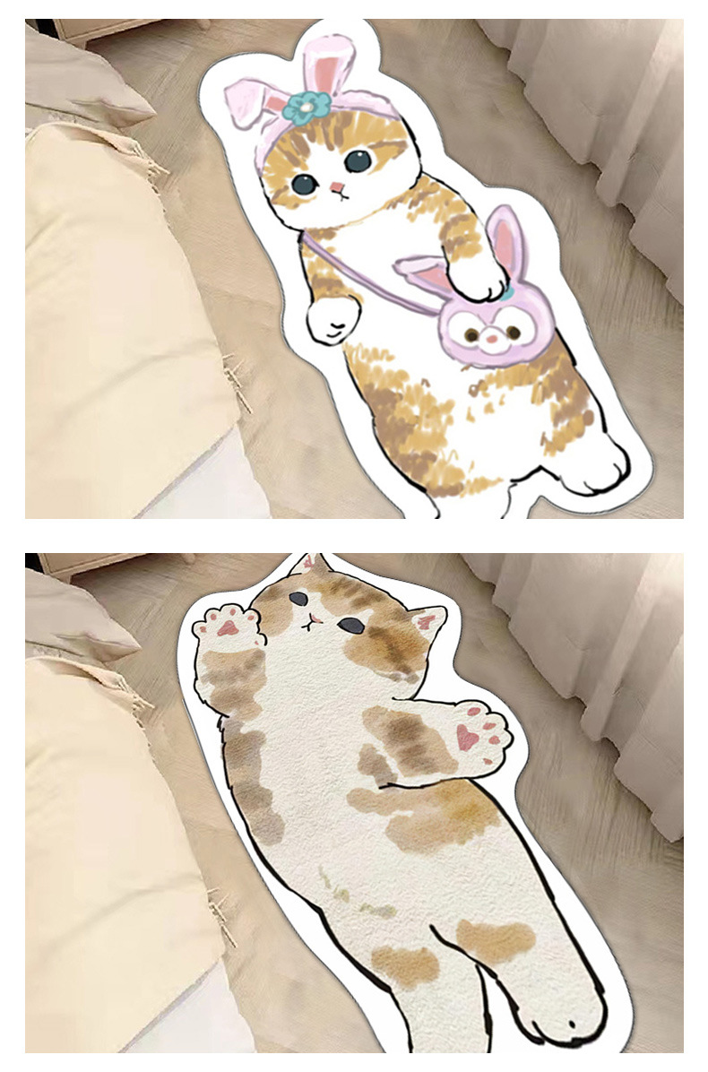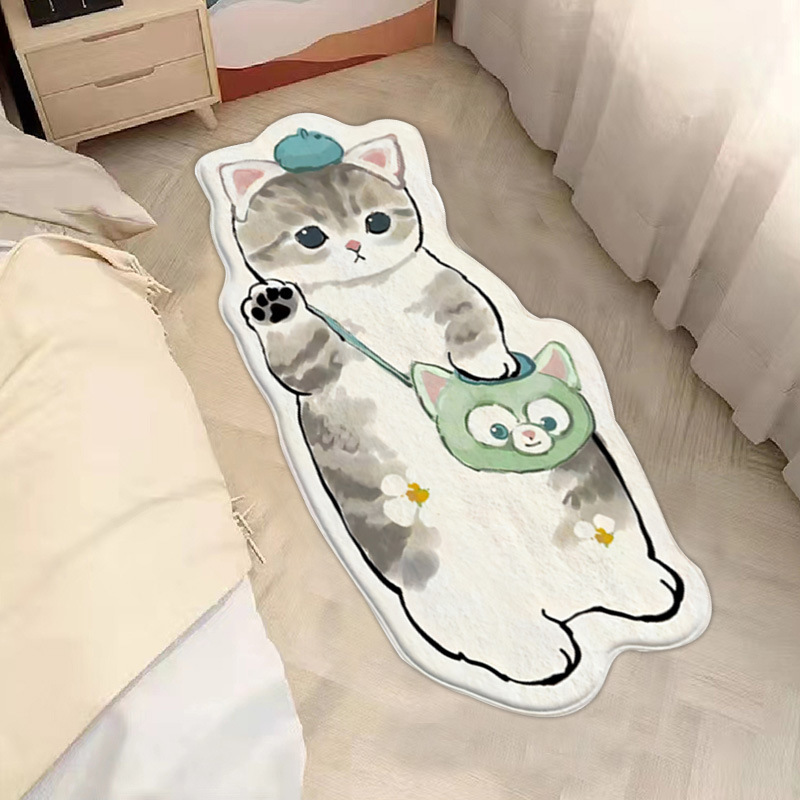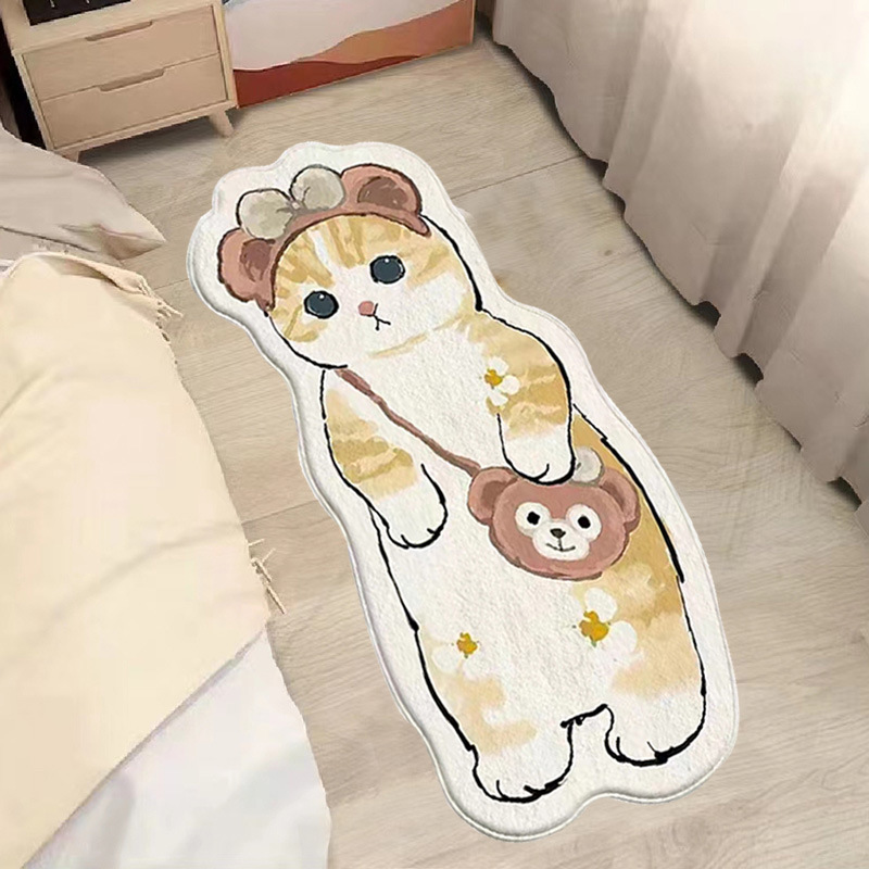 卡通地毯猫咪客厅房间防滑垫家用仿羊绒地垫卧室床边防滑垫