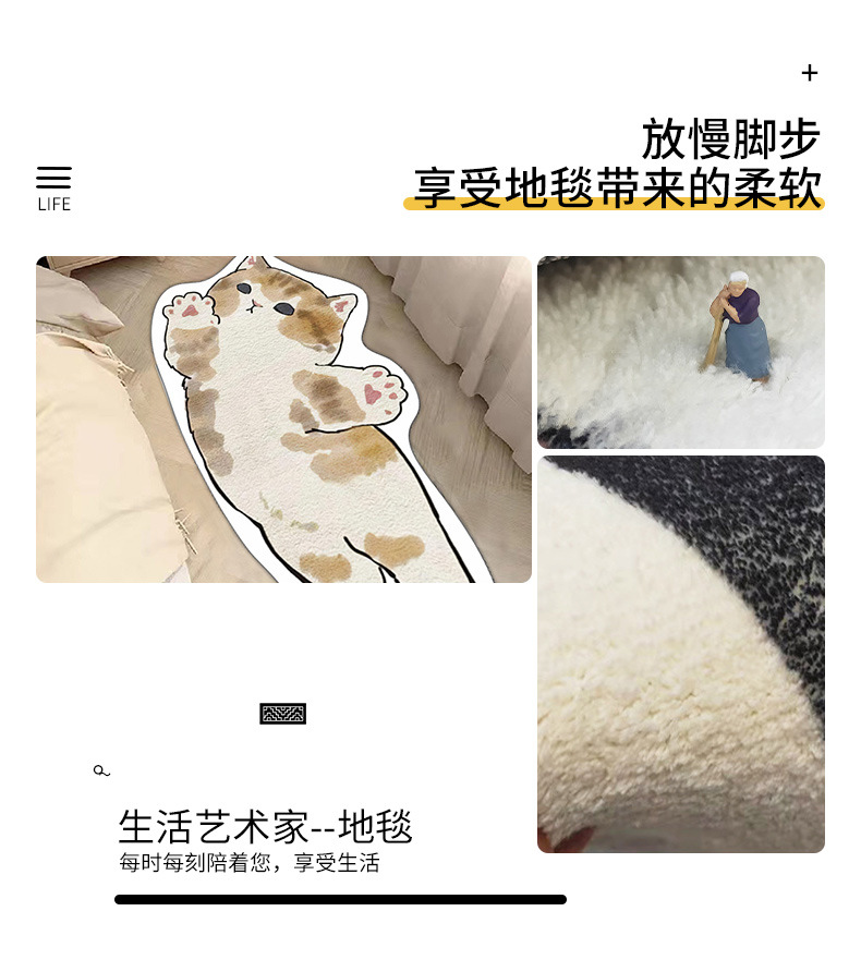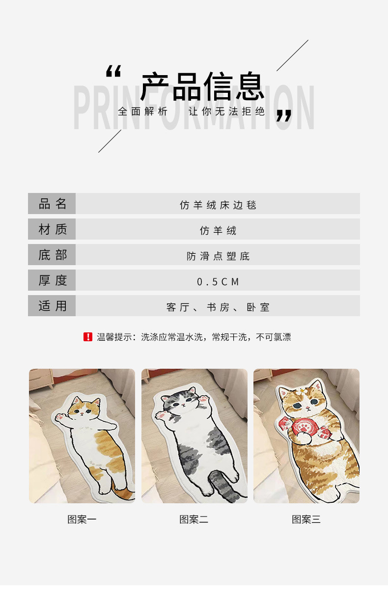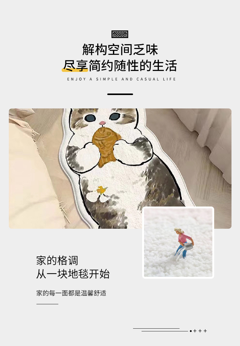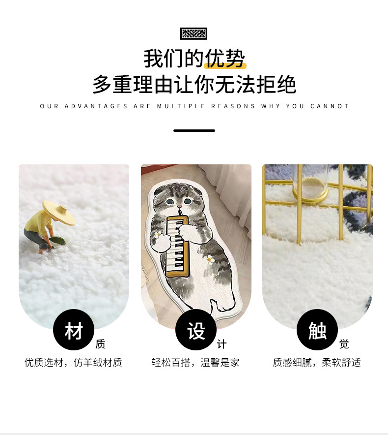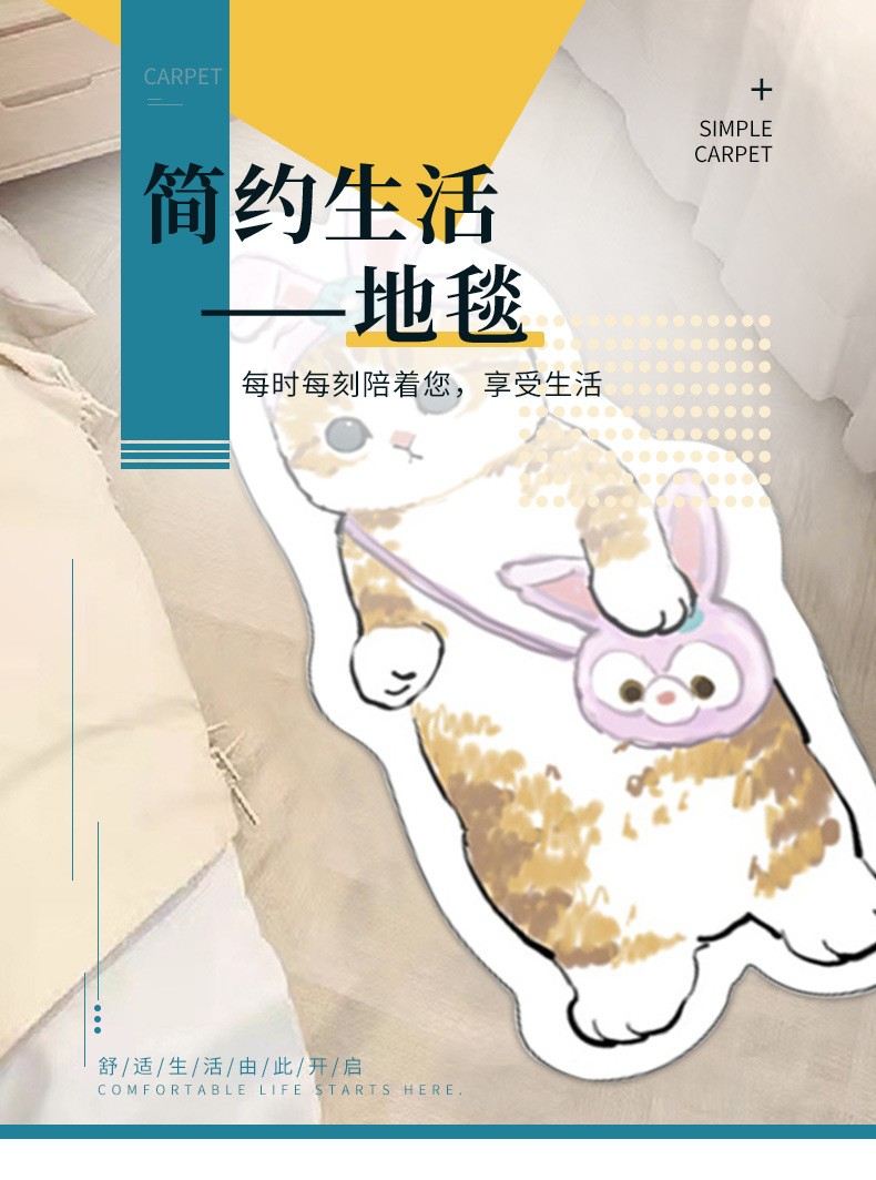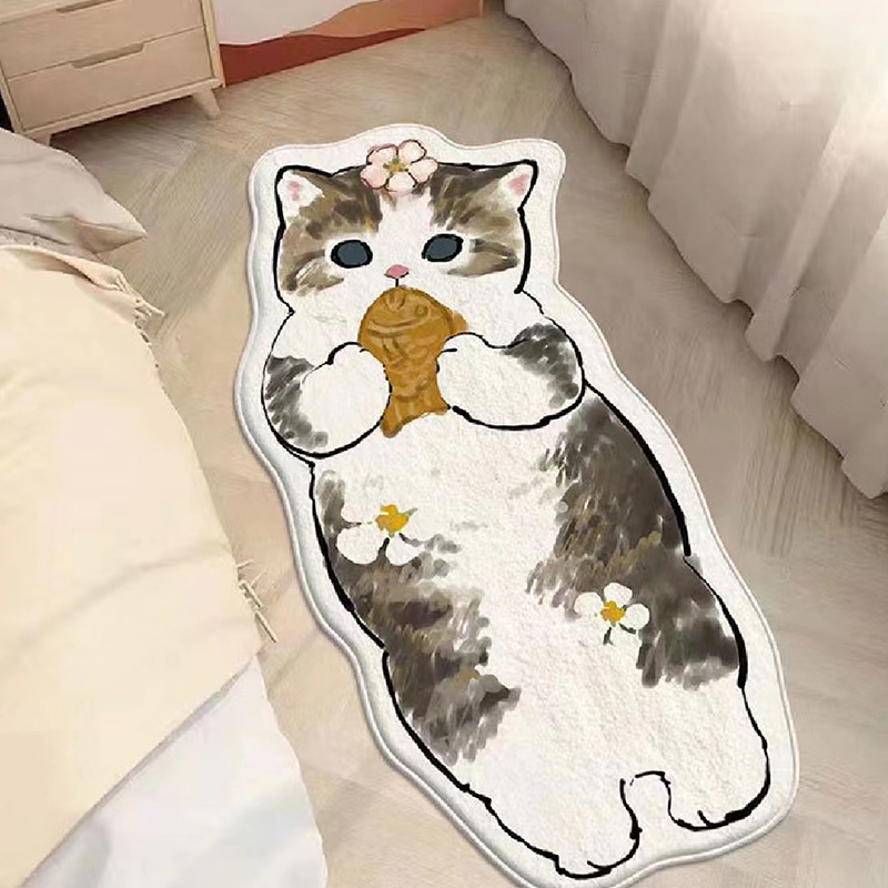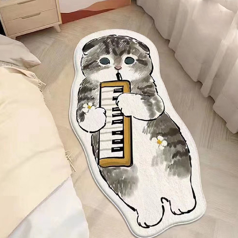 卡通地毯猫咪客厅房间防滑垫家用仿羊绒地垫卧室床边防滑垫