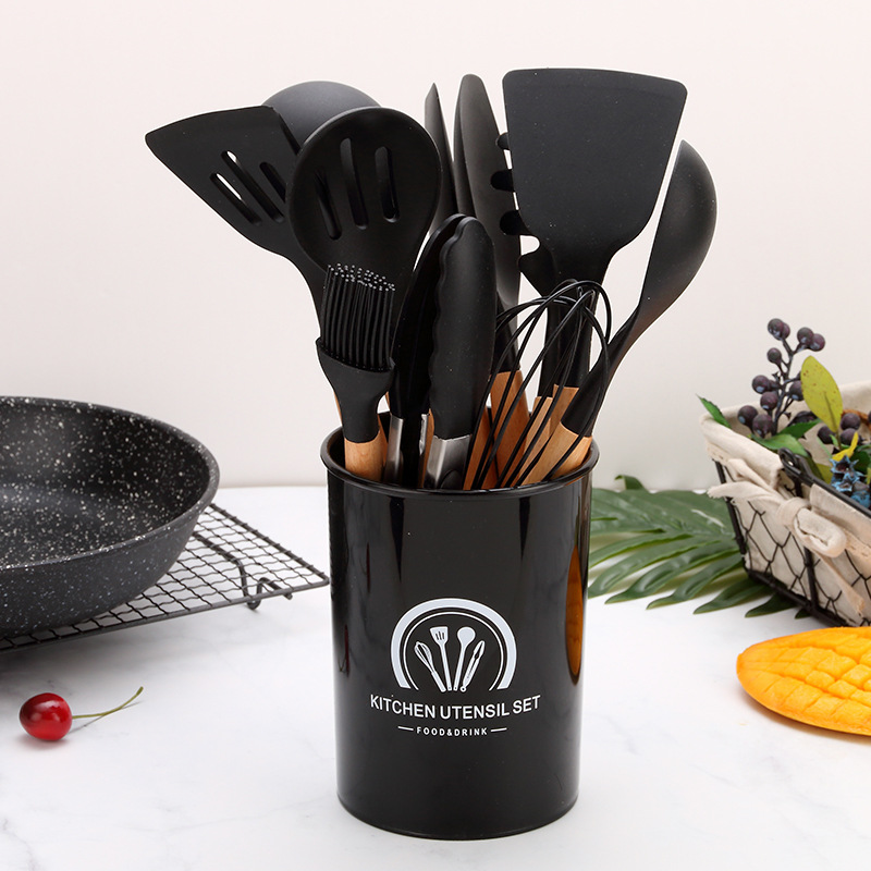 亚马逊 木柄硅胶厨具30件套不粘锅烹饪勺铲厨房用具套装 量大议价