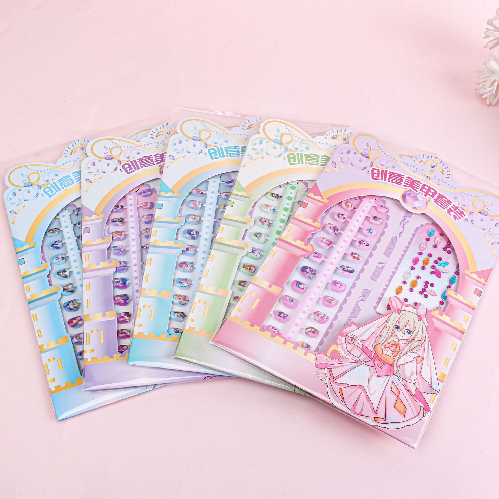 新款儿童DIY创意美甲贴纸套装高清可爱指甲贴女孩带钻石水晶宝石