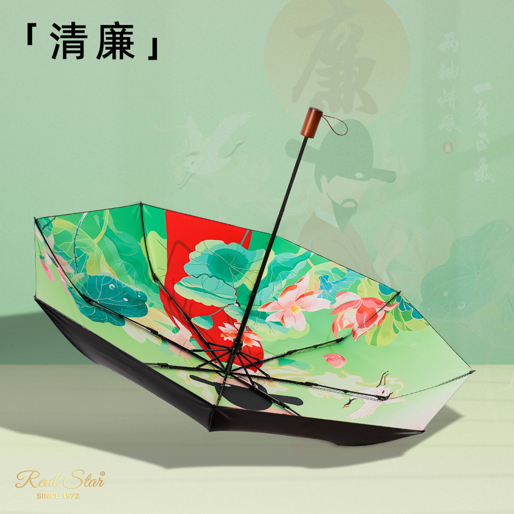 新款三折手开伞伴手礼品义乌名人系列彩绘伞国风清廉风雨伞遮阳伞