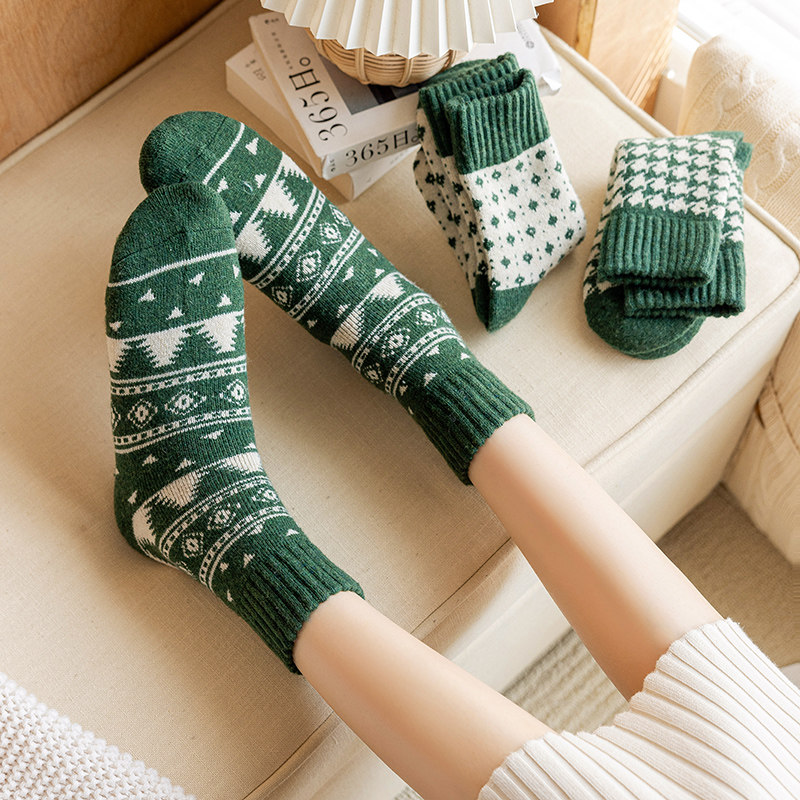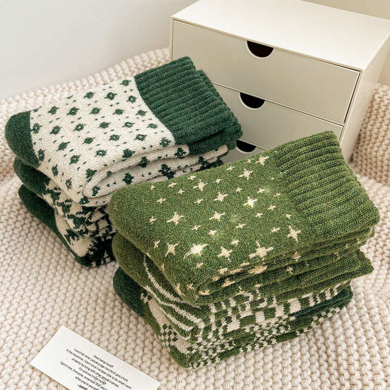 暖冬绿意冬季羊绒加厚毛巾底保暖中筒