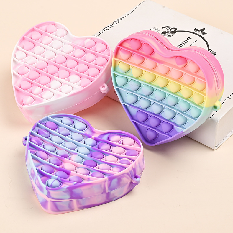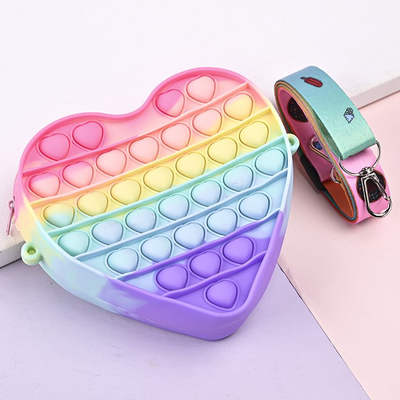 2023年儿童纯色爱心包休闲捏捏乐斜挎玩具包厂家批发硅胶零钱包