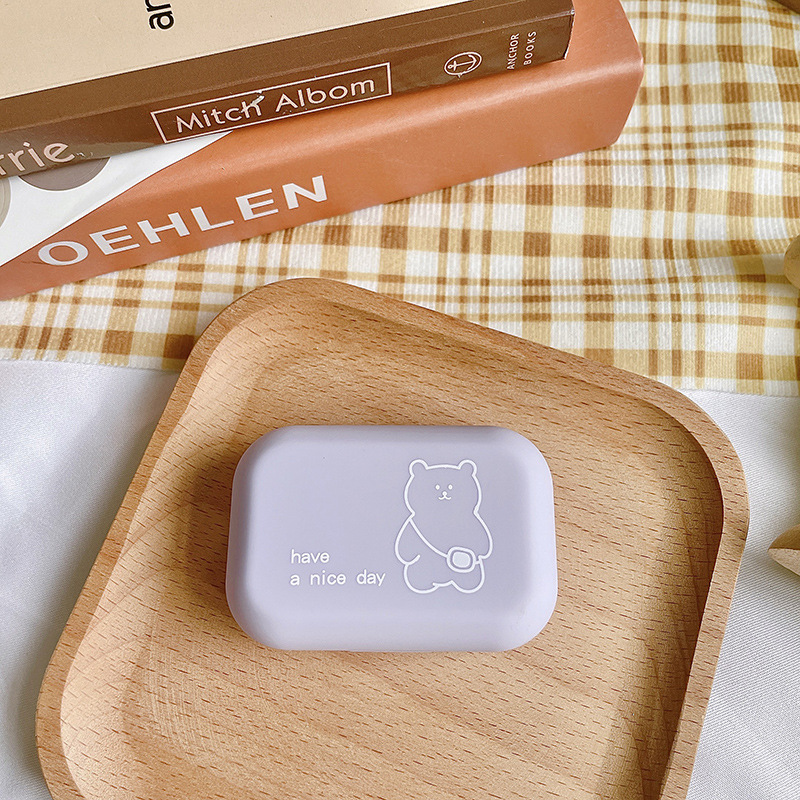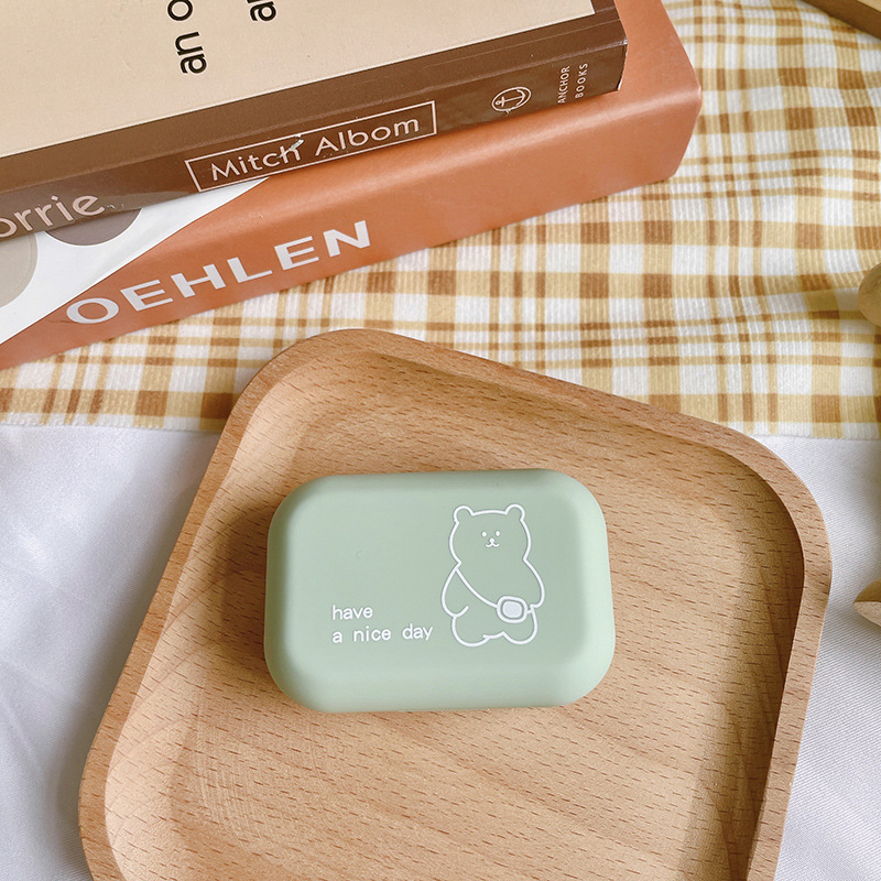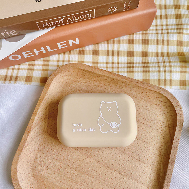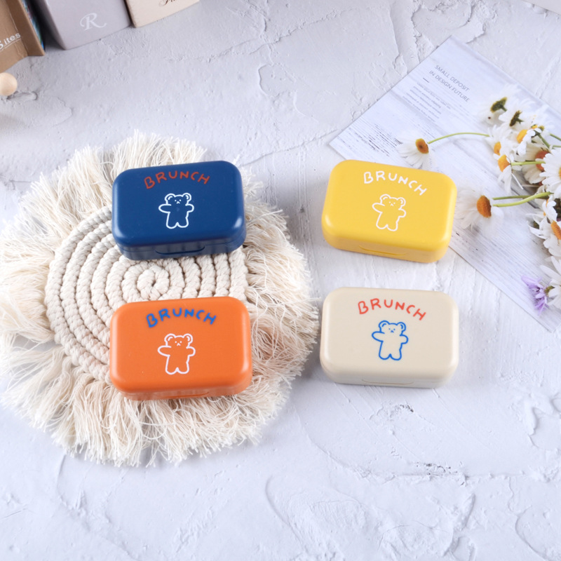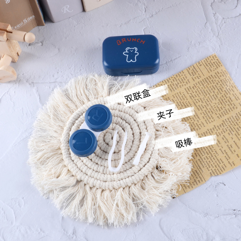 新款可爱小熊美瞳盒ins风卡通隐形眼镜盒情侣伴侣盒 便携护理收盒