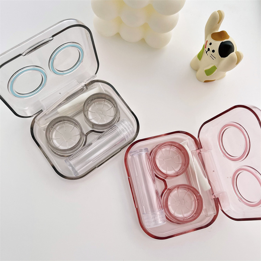 隐形眼镜盒透明简约便携透明迷你简约伴侣盒美瞳双联盒无需拧盖