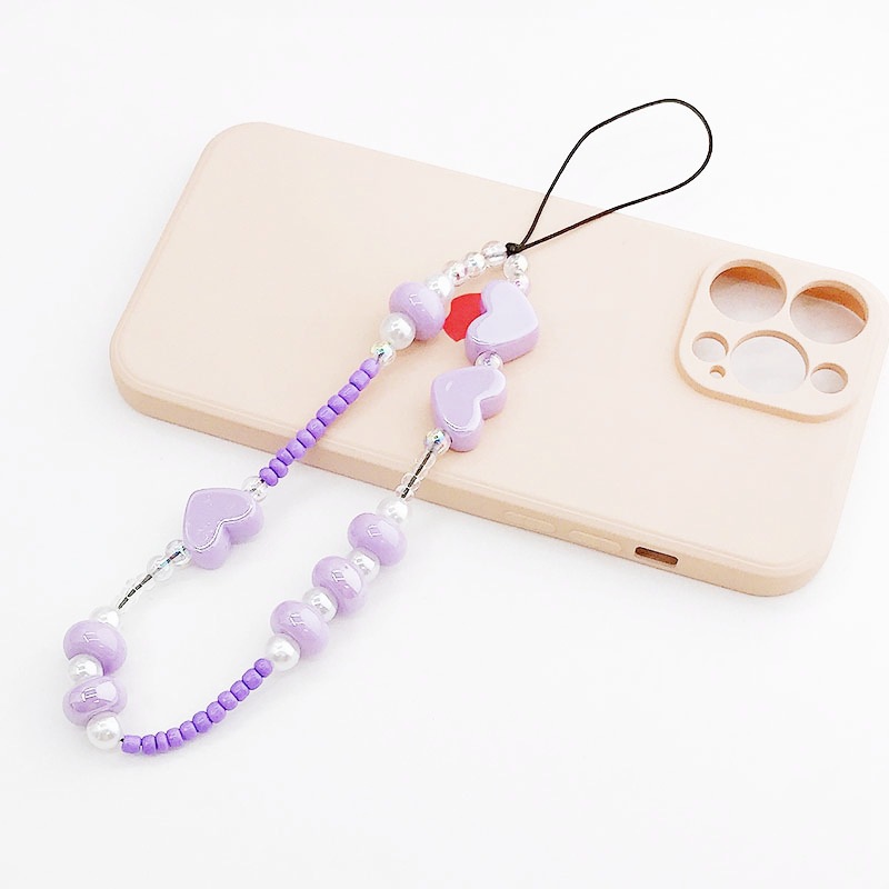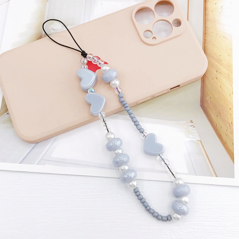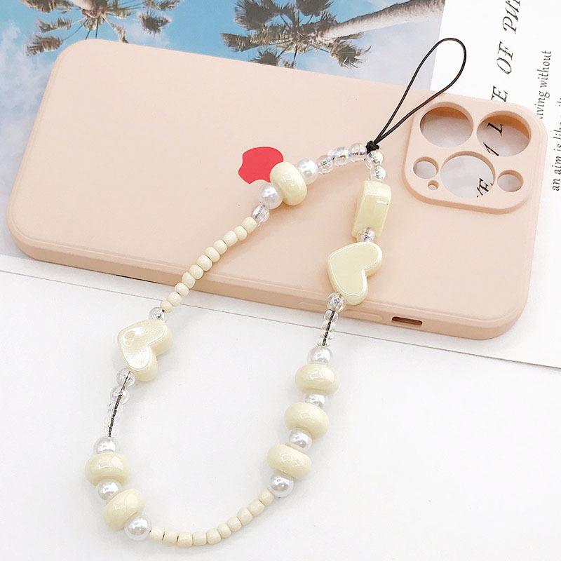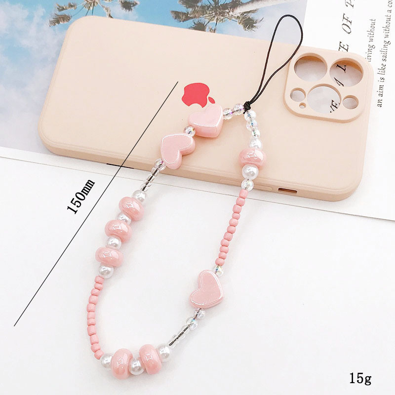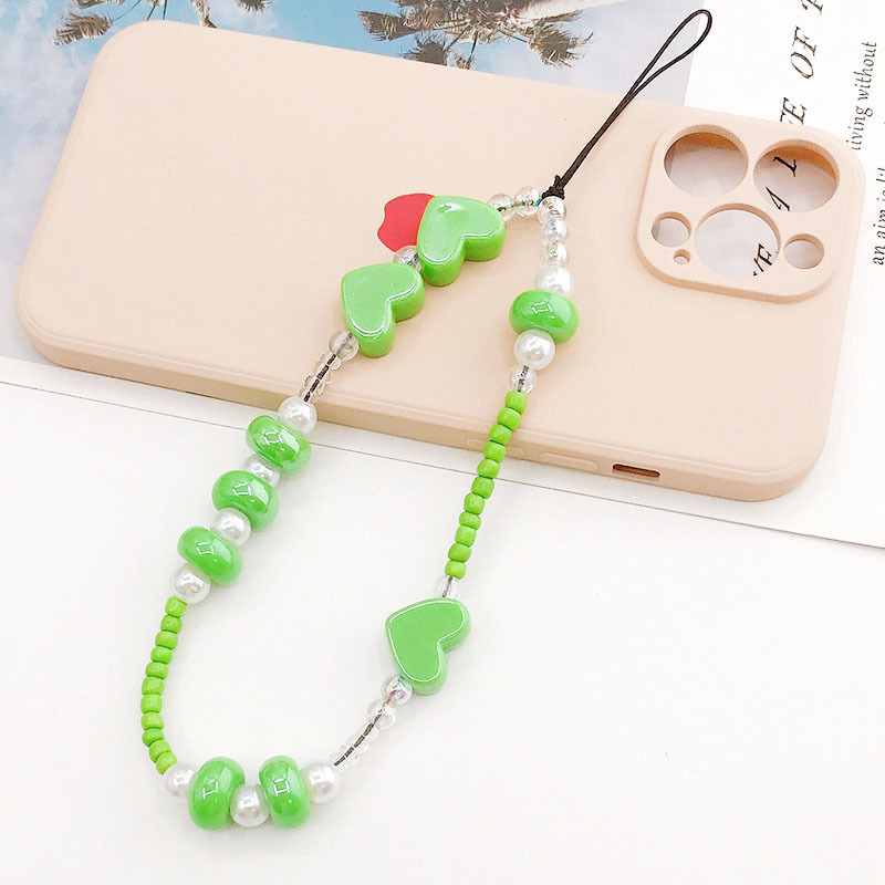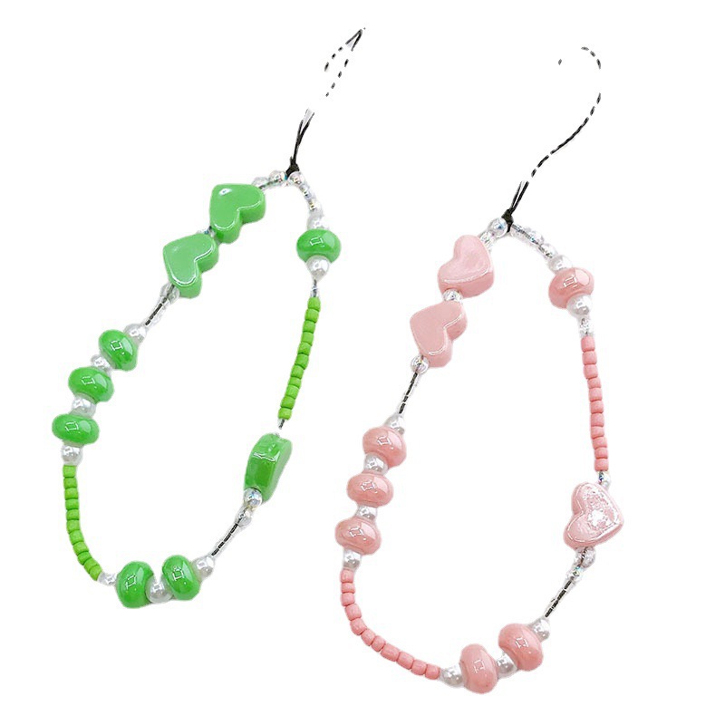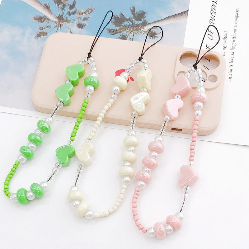 2022年新品亚马逊ins风树脂彩色爱心透明珠子彩色米珠手机链饰品