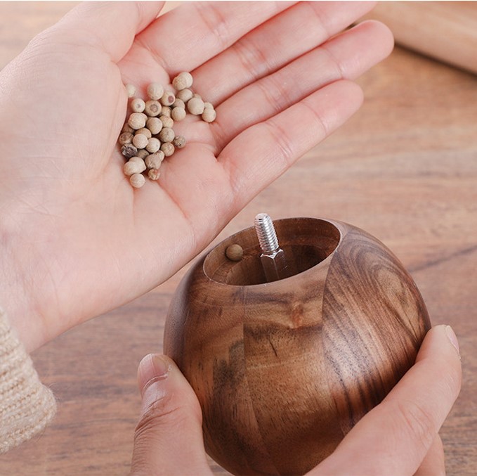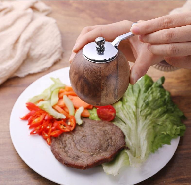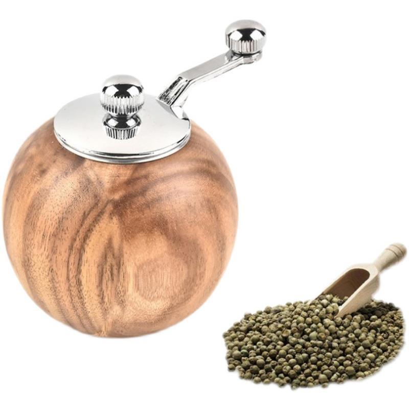 球形木质黑胡椒研磨器高颜值酒店餐厅会所手动旋转花椒磨粉器