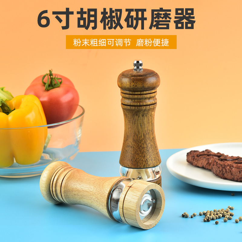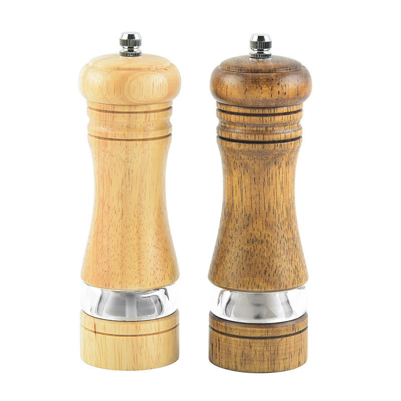 橡木手动胡椒研磨器 陶瓷芯木质研磨器 家用厨房亚克力研磨胡椒瓶