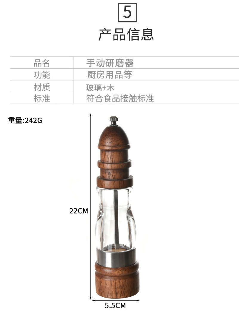 复古橡木磨香料调味瓶 胡椒研磨器 Oak Pepper Salt Spice Mill