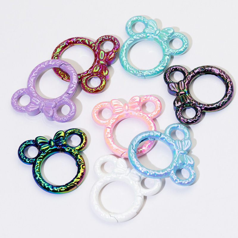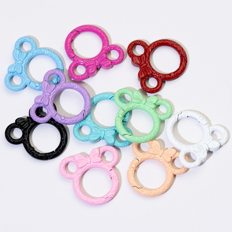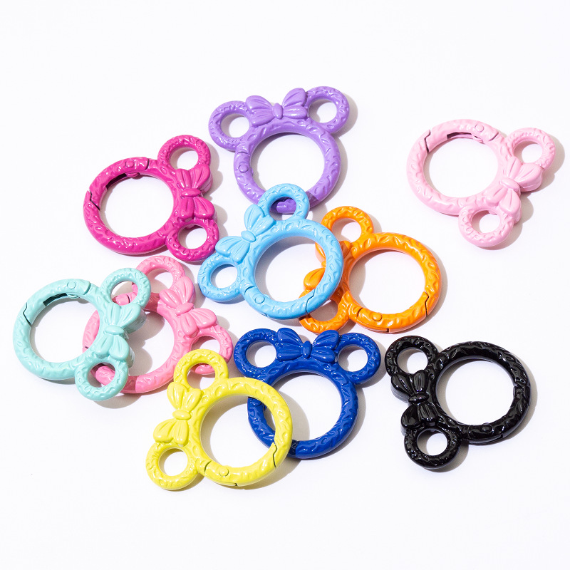 烤漆彩色弹簧扣圆形开口环米奇弹簧圈钥匙扣DIY配件合金连接环