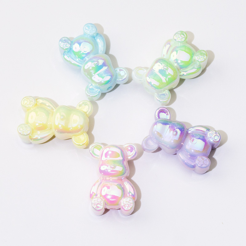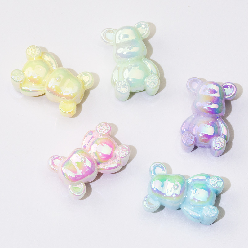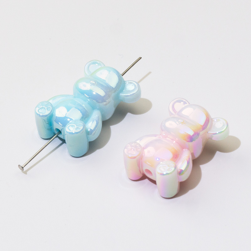 夜光小熊散珠实色立体通孔珠亚克力手机链钥匙扣DIY饰品配件