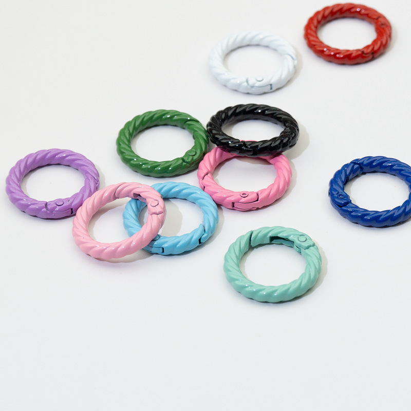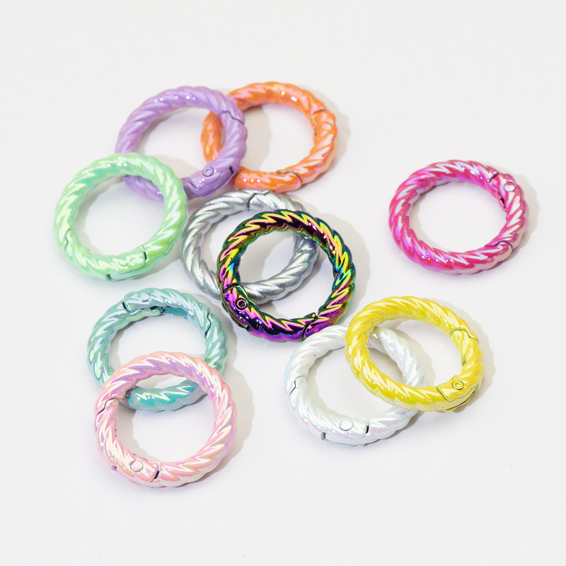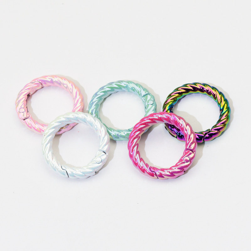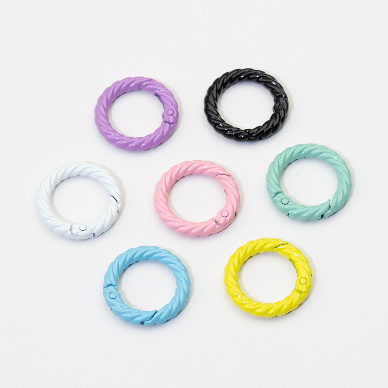 烤漆彩色麻花弹簧扣圆形开口环螺纹弹簧圈钥匙扣DIY配件合金连接