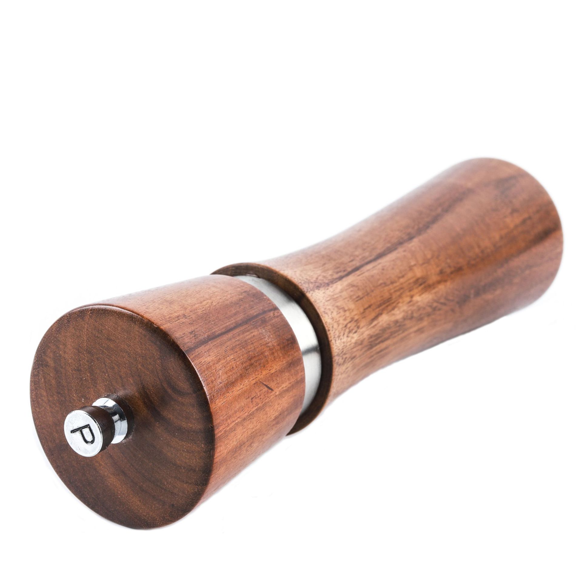 (出口欧美)8寸手动木质胡椒磨带金属环 陶瓷磨心可定制logo