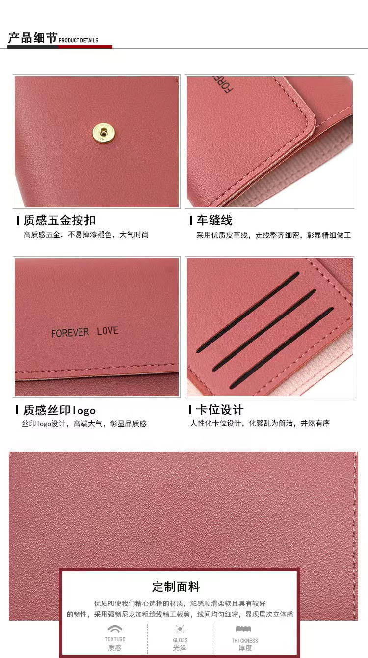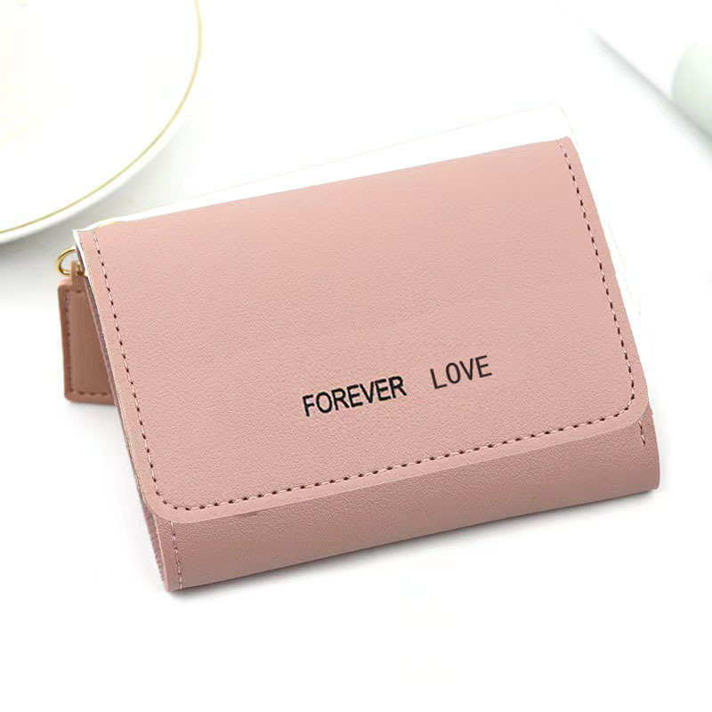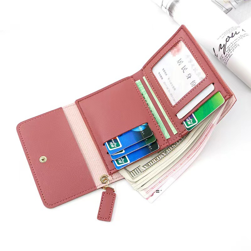 时尚新款女士折叠短款小三折钱包纯色多卡位卡包钱夹手拿包零钱包